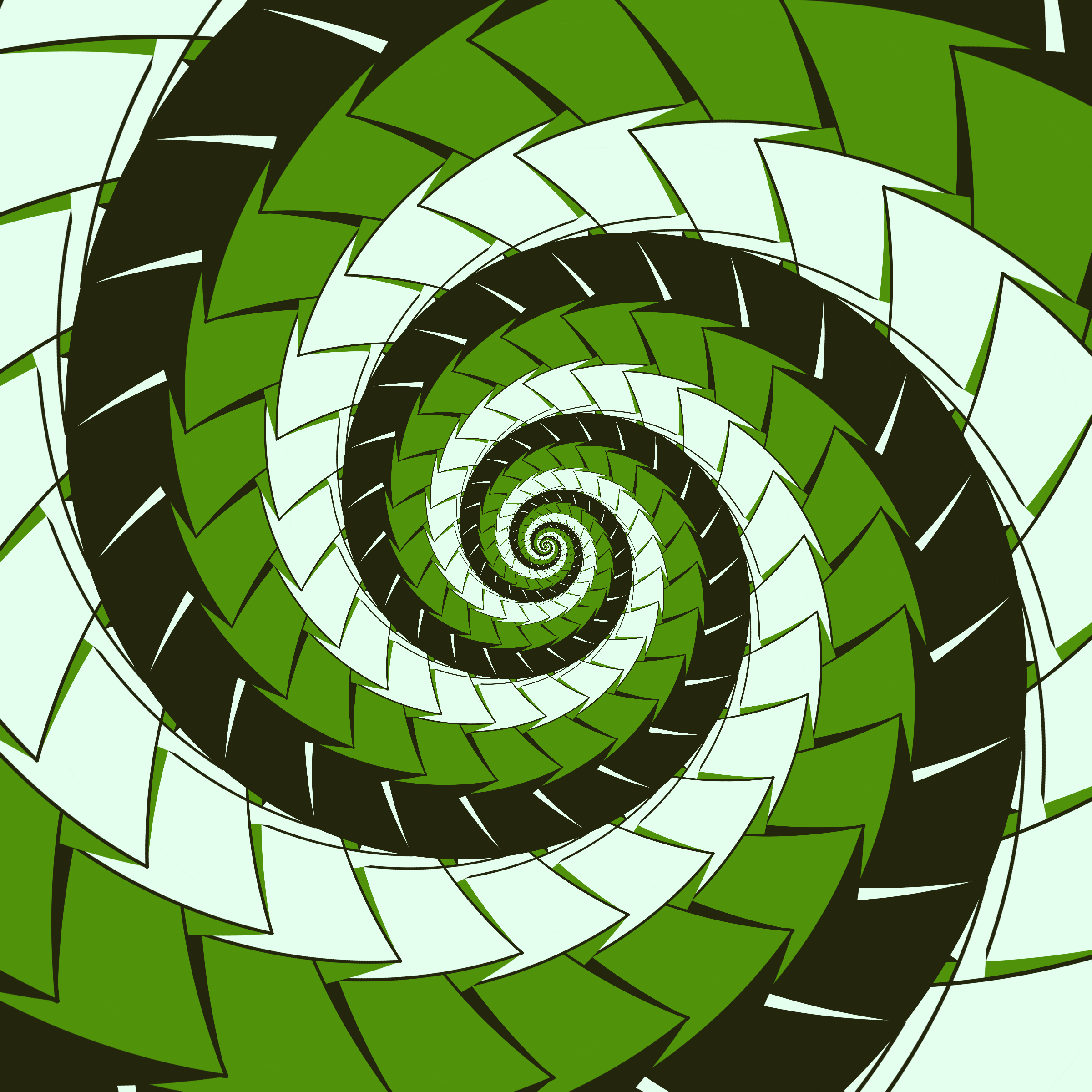 Escher-style tiling of a plane, gone wrong. Each image spins hash-driven colors, shapes, and symmetries into infinity. Fly through the spiral as it morphs between beauty and madness. Keys: F = Fly through/back, D = Distort on/off, Esc = Stop, S = Save image.