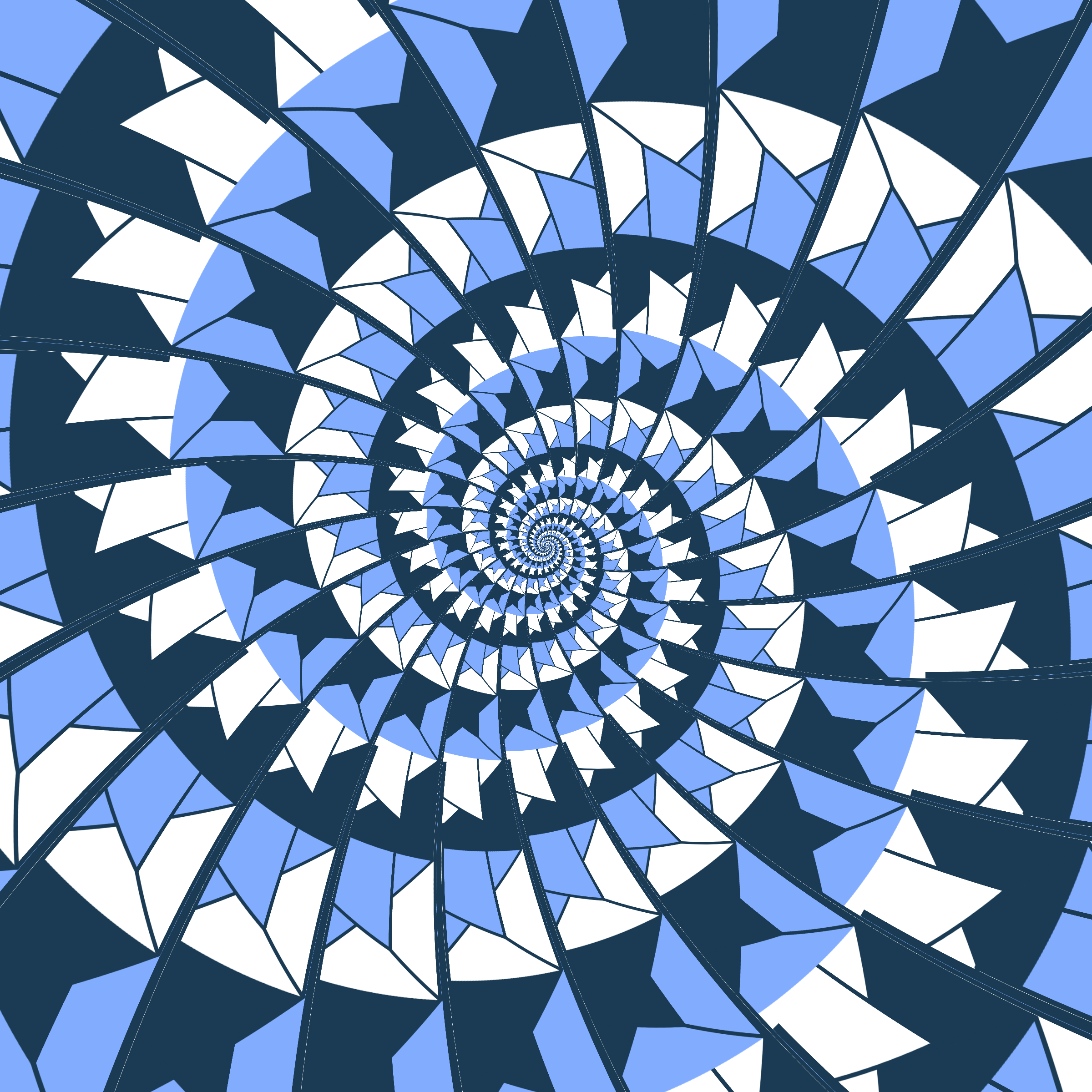 Escher-style tiling of a plane, gone wrong. Each image spins hash-driven colors, shapes, and symmetries into infinity. Fly through the spiral as it morphs between beauty and madness. Keys: F = Fly through/back, D = Distort on/off, Esc = Stop, S = Save image.