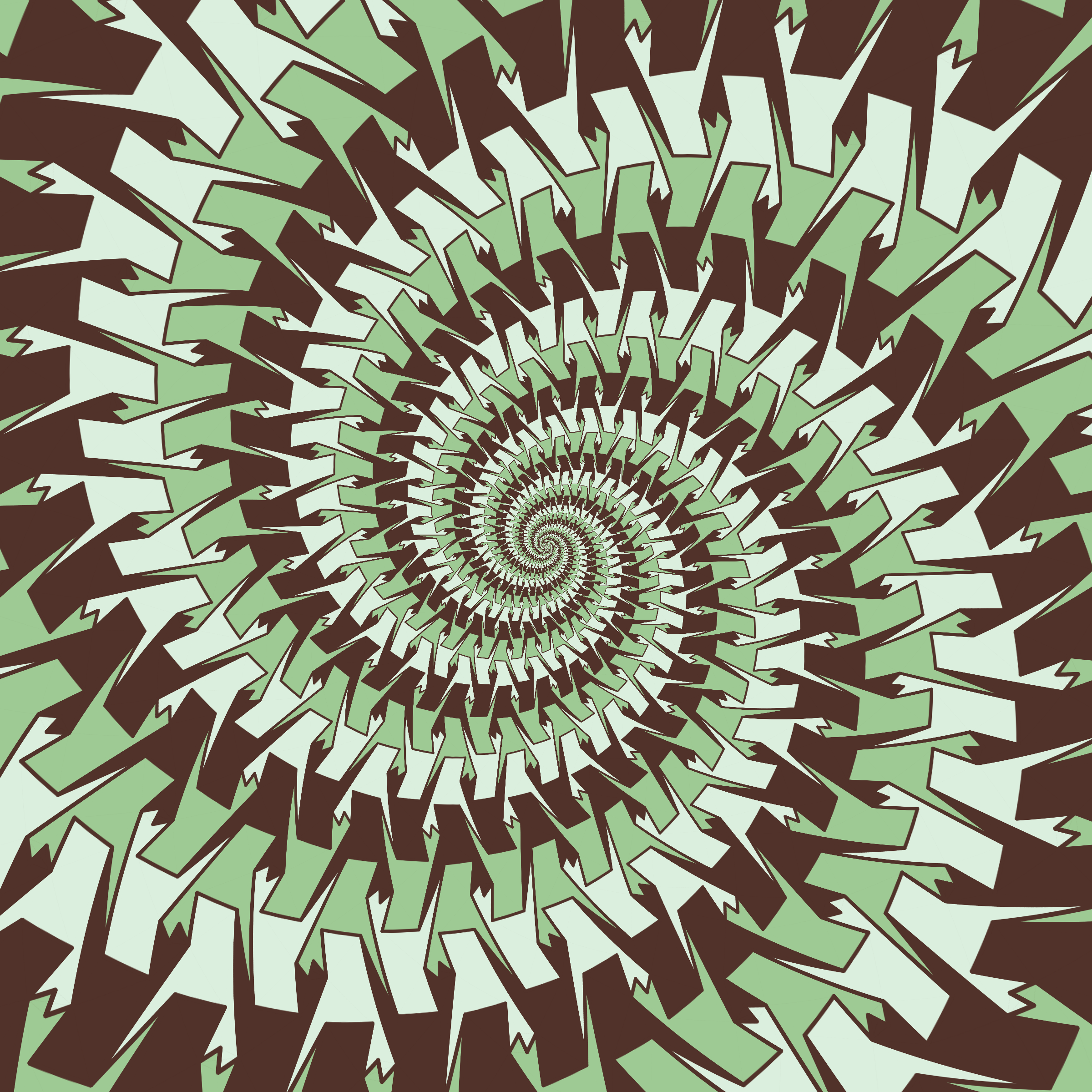 Escher-style tiling of a plane, gone wrong. Each image spins hash-driven colors, shapes, and symmetries into infinity. Fly through the spiral as it morphs between beauty and madness. Keys: F = Fly through/back, D = Distort on/off, Esc = Stop, S = Save image.