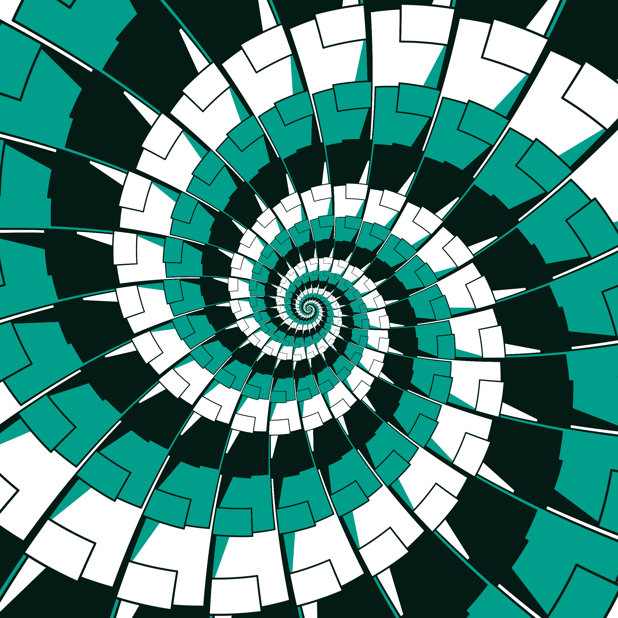 Escher-style tiling of a plane, gone wrong. Each image spins hash-driven colors, shapes, and symmetries into infinity. Fly through the spiral as it morphs between beauty and madness. Keys: F = Fly through/back, D = Distort on/off, Esc = Stop, S = Save image.