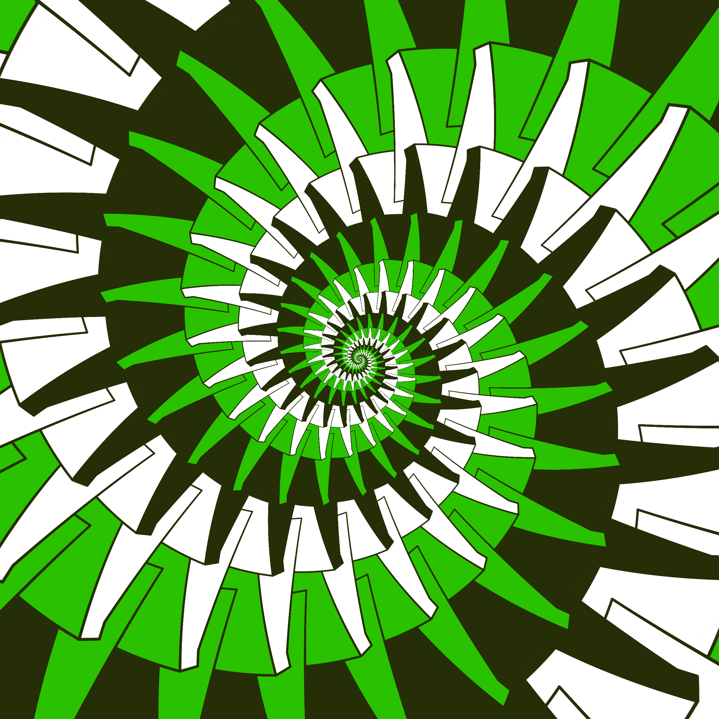 Escher-style tiling of a plane, gone wrong. Each image spins hash-driven colors, shapes, and symmetries into infinity. Fly through the spiral as it morphs between beauty and madness. Keys: F = Fly through/back, D = Distort on/off, Esc = Stop, S = Save image.
