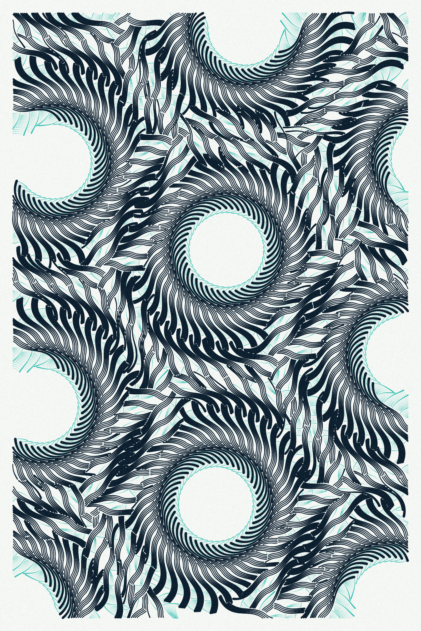 Intricada is created with autonomous agents drawing very small dots and following simple rules, positioned according to geometrical patterns. I’ve designed Intricada like a simulation, giving initial conditions and see what comes out of it. Each piece is the result of thousands of unpredictable consequences.