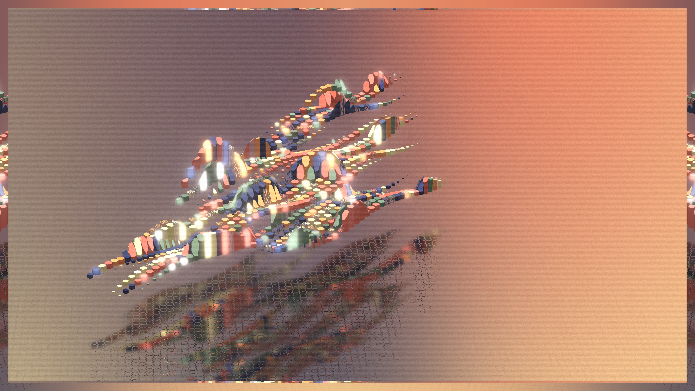 Random and anarchy, chaos and structurality. Jiometory No Compute is a living motion experimental study, a contemplative geometry organism that lives now and forever. Each individual units movement contributes and flows into a generative path for a greater purpose. Together they try to achieve a symbiosis, although an « ideal » computer program is very relative. Exploring domains of definitions and warping an input data-set leads to unexpected behaviors, sometimes surprising, often fascinating. Interactions : Zoom-in / Zoom-out / Drag left and right / Best view in full-screen.