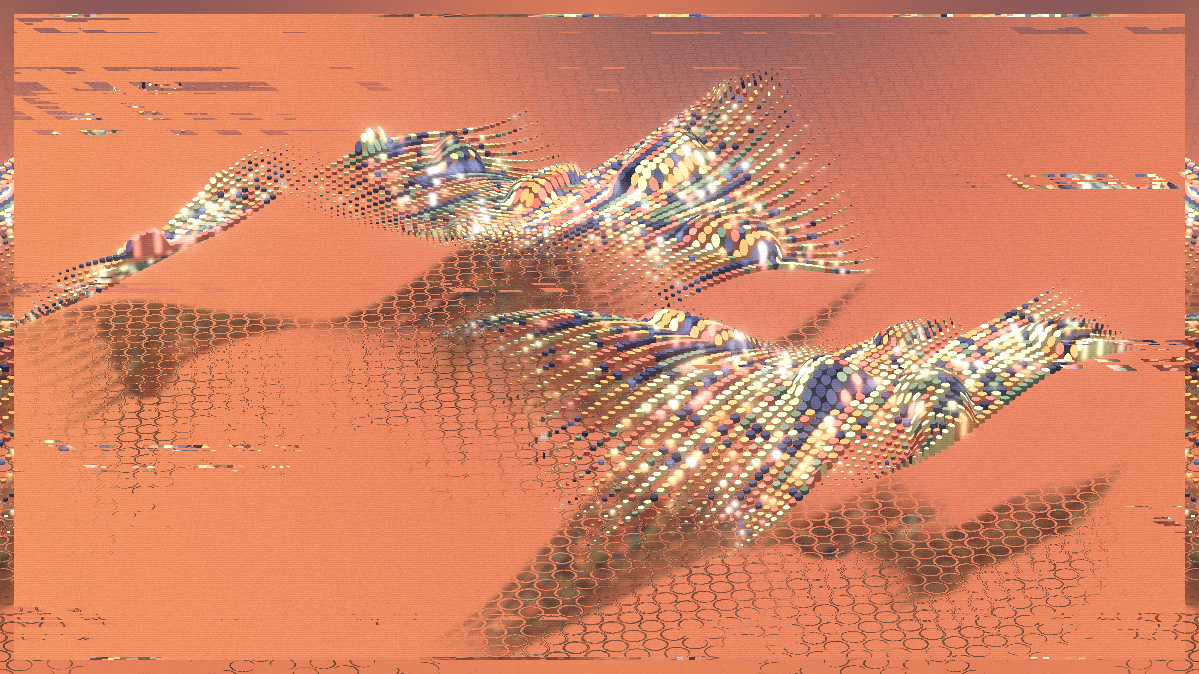 Random and anarchy, chaos and structurality. Jiometory No Compute is a living motion experimental study, a contemplative geometry organism that lives now and forever. Each individual units movement contributes and flows into a generative path for a greater purpose. Together they try to achieve a symbiosis, although an « ideal » computer program is very relative. Exploring domains of definitions and warping an input data-set leads to unexpected behaviors, sometimes surprising, often fascinating. Interactions : Zoom-in / Zoom-out / Drag left and right / Best view in full-screen.