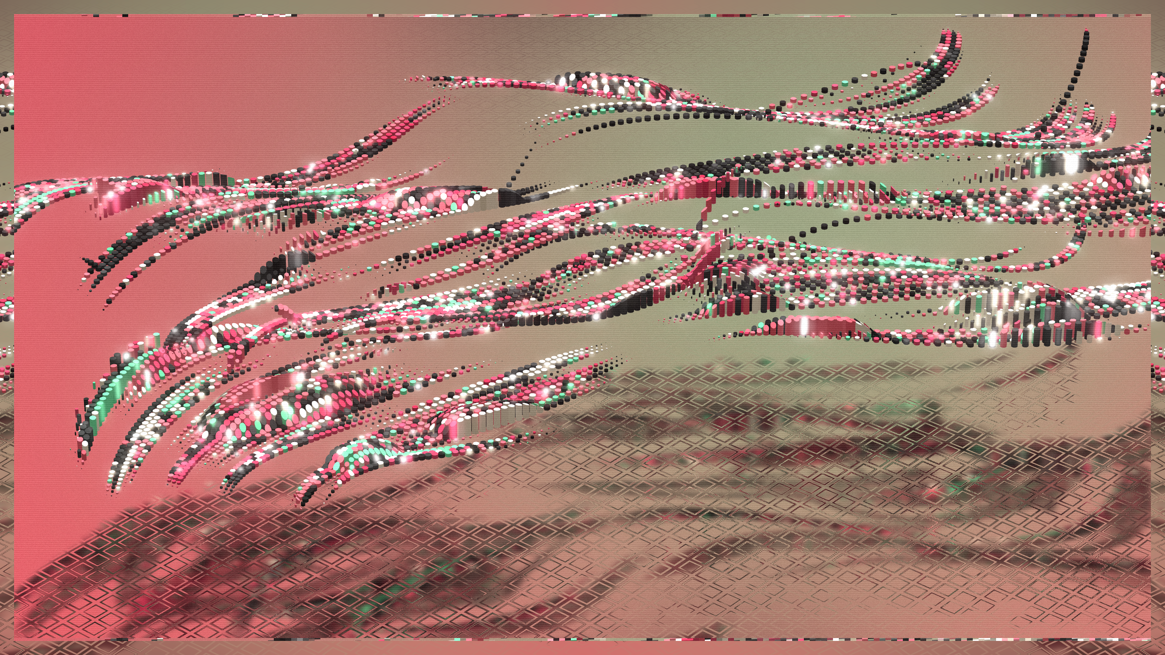 Random and anarchy, chaos and structurality. Jiometory No Compute is a living motion experimental study, a contemplative geometry organism that lives now and forever. Each individual units movement contributes and flows into a generative path for a greater purpose. Together they try to achieve a symbiosis, although an « ideal » computer program is very relative. Exploring domains of definitions and warping an input data-set leads to unexpected behaviors, sometimes surprising, often fascinating. Interactions : Zoom-in / Zoom-out / Drag left and right / Best view in full-screen.