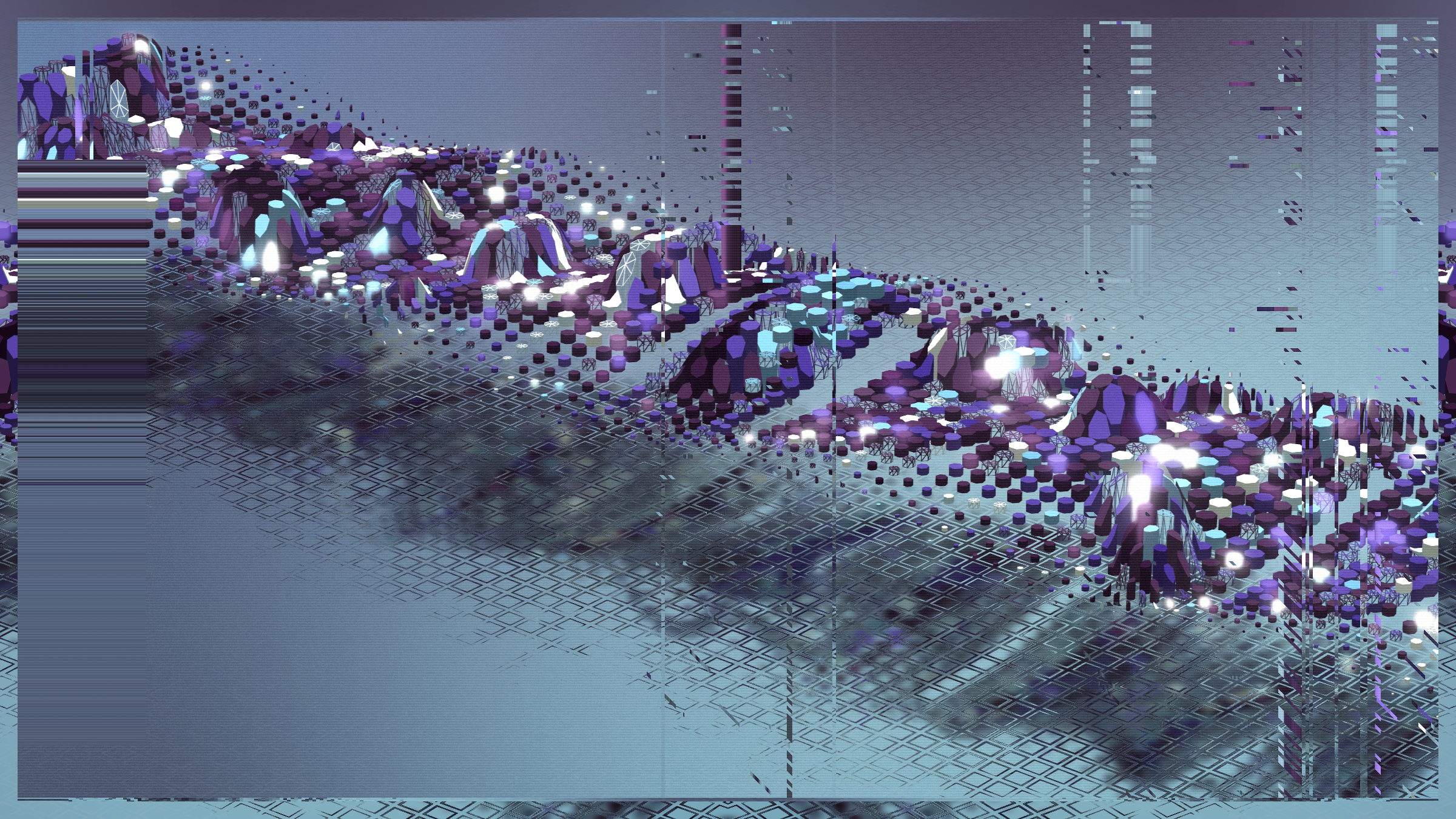 Random and anarchy, chaos and structurality. Jiometory No Compute is a living motion experimental study, a contemplative geometry organism that lives now and forever. Each individual units movement contributes and flows into a generative path for a greater purpose. Together they try to achieve a symbiosis, although an « ideal » computer program is very relative. Exploring domains of definitions and warping an input data-set leads to unexpected behaviors, sometimes surprising, often fascinating. Interactions : Zoom-in / Zoom-out / Drag left and right / Best view in full-screen.