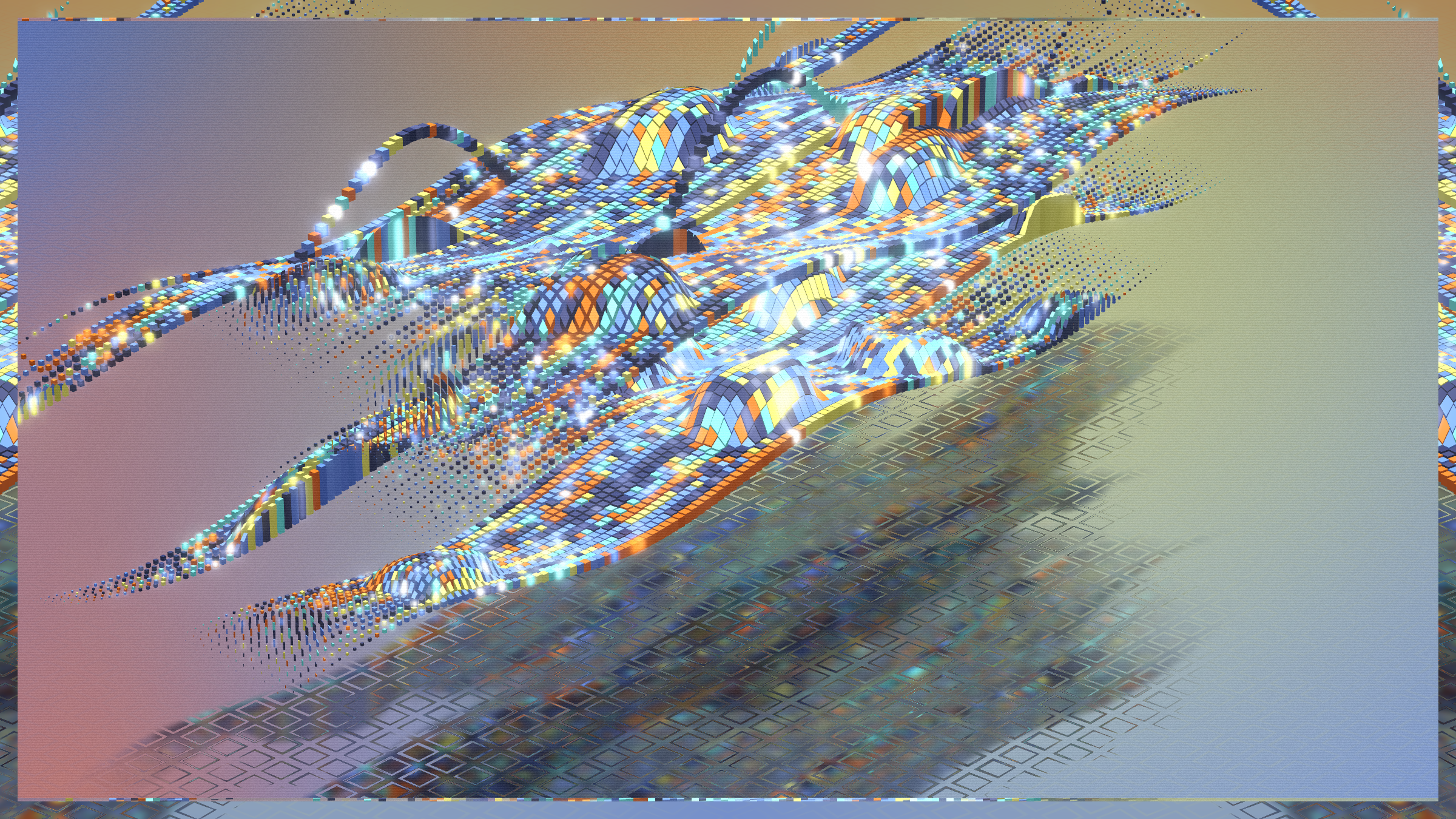 Random and anarchy, chaos and structurality. Jiometory No Compute is a living motion experimental study, a contemplative geometry organism that lives now and forever. Each individual units movement contributes and flows into a generative path for a greater purpose. Together they try to achieve a symbiosis, although an « ideal » computer program is very relative. Exploring domains of definitions and warping an input data-set leads to unexpected behaviors, sometimes surprising, often fascinating. Interactions : Zoom-in / Zoom-out / Drag left and right / Best view in full-screen.