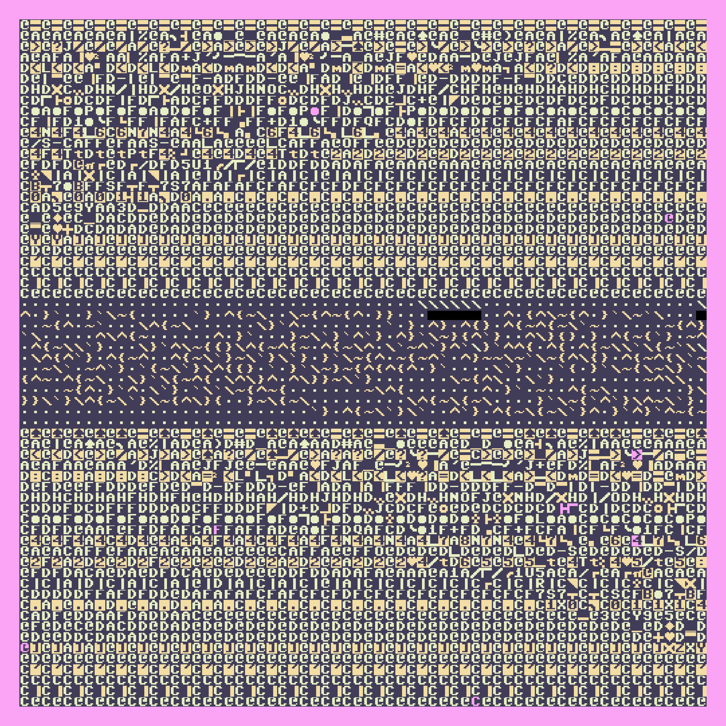 The visual elements are derived from the 80s computer era and are ought to evoke a warm feeling of completeness and simplicity. On a 64×64 grid a variety of glyphs find their home within the single cells, shaped by different algorithms and placed into this world by one of the many color palettes. In total there are 64 custom color palettes with the ability to switch to a more 'rare' inverted configuration.