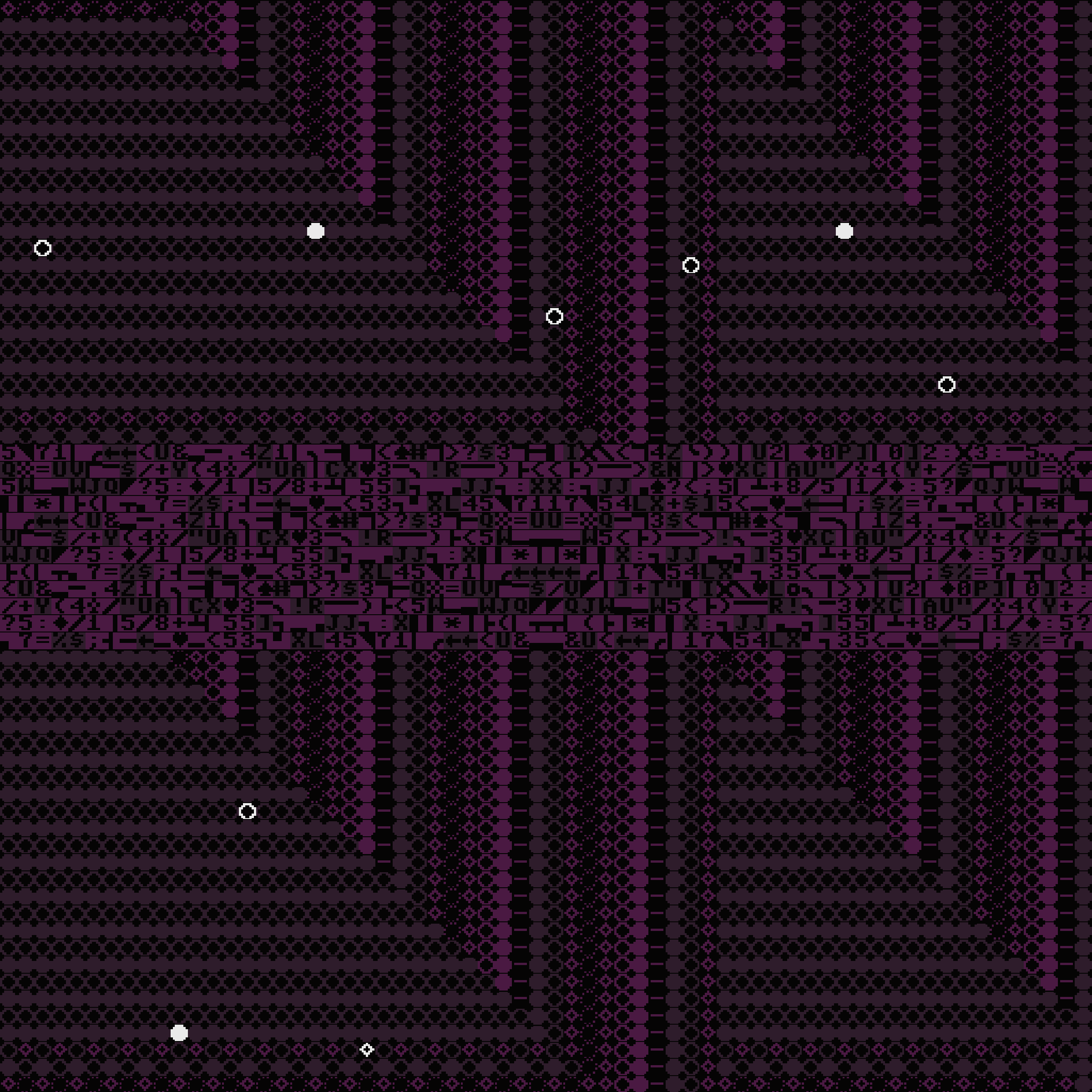 The visual elements are derived from the 80s computer era and are ought to evoke a warm feeling of completeness and simplicity. On a 64×64 grid a variety of glyphs find their home within the single cells, shaped by different algorithms and placed into this world by one of the many color palettes. In total there are 64 custom color palettes with the ability to switch to a more 'rare' inverted configuration.