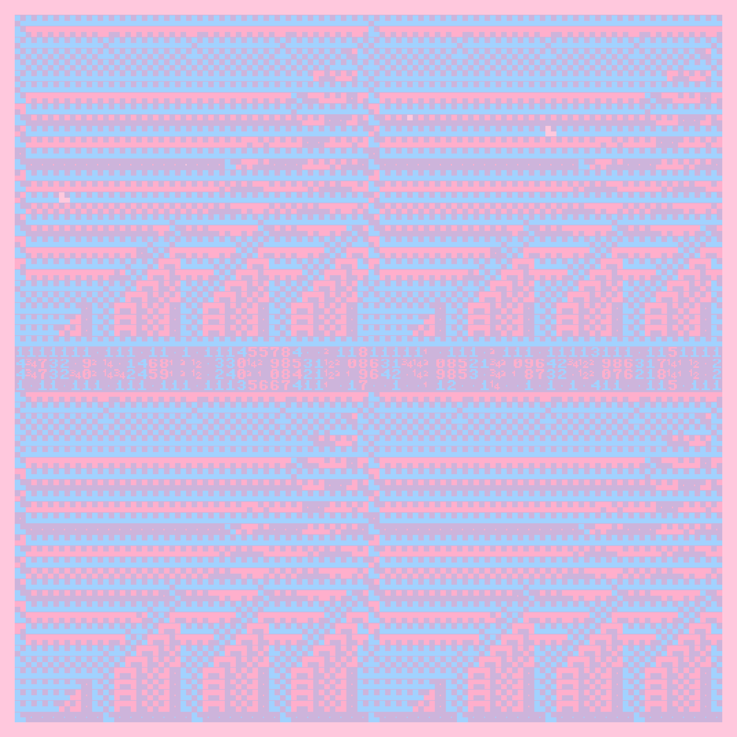 The visual elements are derived from the 80s computer era and are ought to evoke a warm feeling of completeness and simplicity. On a 64×64 grid a variety of glyphs find their home within the single cells, shaped by different algorithms and placed into this world by one of the many color palettes. In total there are 64 custom color palettes with the ability to switch to a more 'rare' inverted configuration.