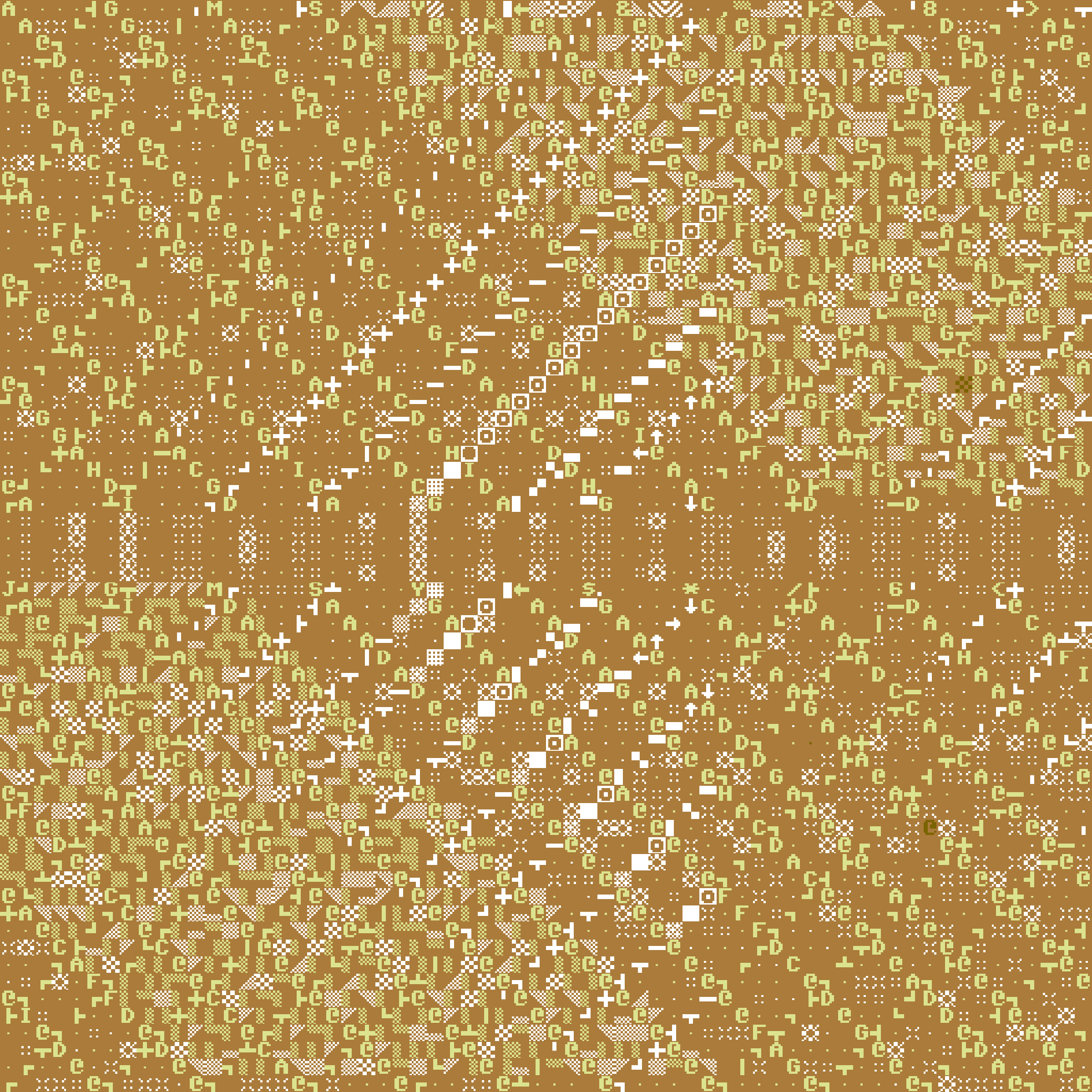 The visual elements are derived from the 80s computer era and are ought to evoke a warm feeling of completeness and simplicity. On a 64×64 grid a variety of glyphs find their home within the single cells, shaped by different algorithms and placed into this world by one of the many color palettes. In total there are 64 custom color palettes with the ability to switch to a more 'rare' inverted configuration.