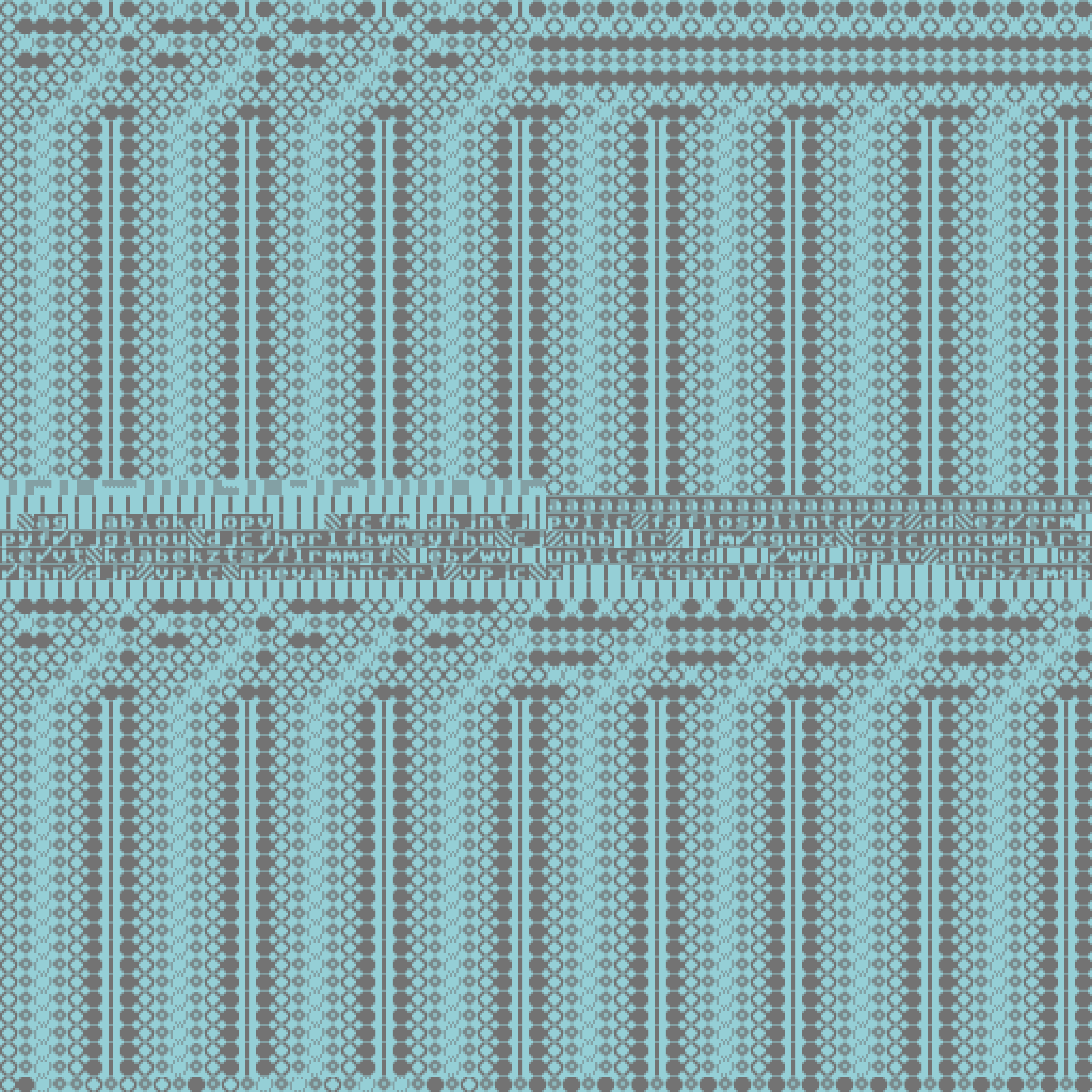 The visual elements are derived from the 80s computer era and are ought to evoke a warm feeling of completeness and simplicity. On a 64×64 grid a variety of glyphs find their home within the single cells, shaped by different algorithms and placed into this world by one of the many color palettes. In total there are 64 custom color palettes with the ability to switch to a more 'rare' inverted configuration.