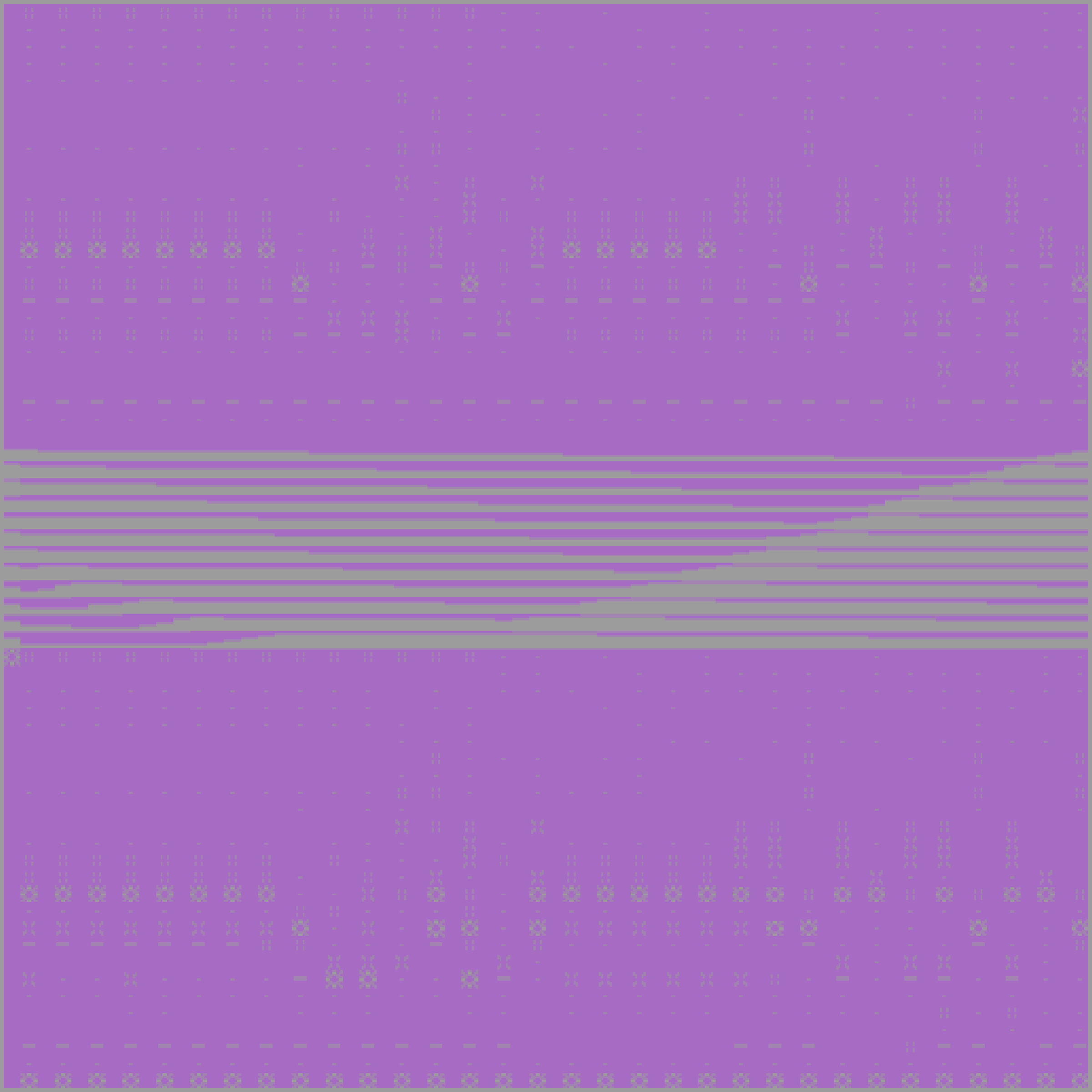 The visual elements are derived from the 80s computer era and are ought to evoke a warm feeling of completeness and simplicity. On a 64×64 grid a variety of glyphs find their home within the single cells, shaped by different algorithms and placed into this world by one of the many color palettes. In total there are 64 custom color palettes with the ability to switch to a more 'rare' inverted configuration.