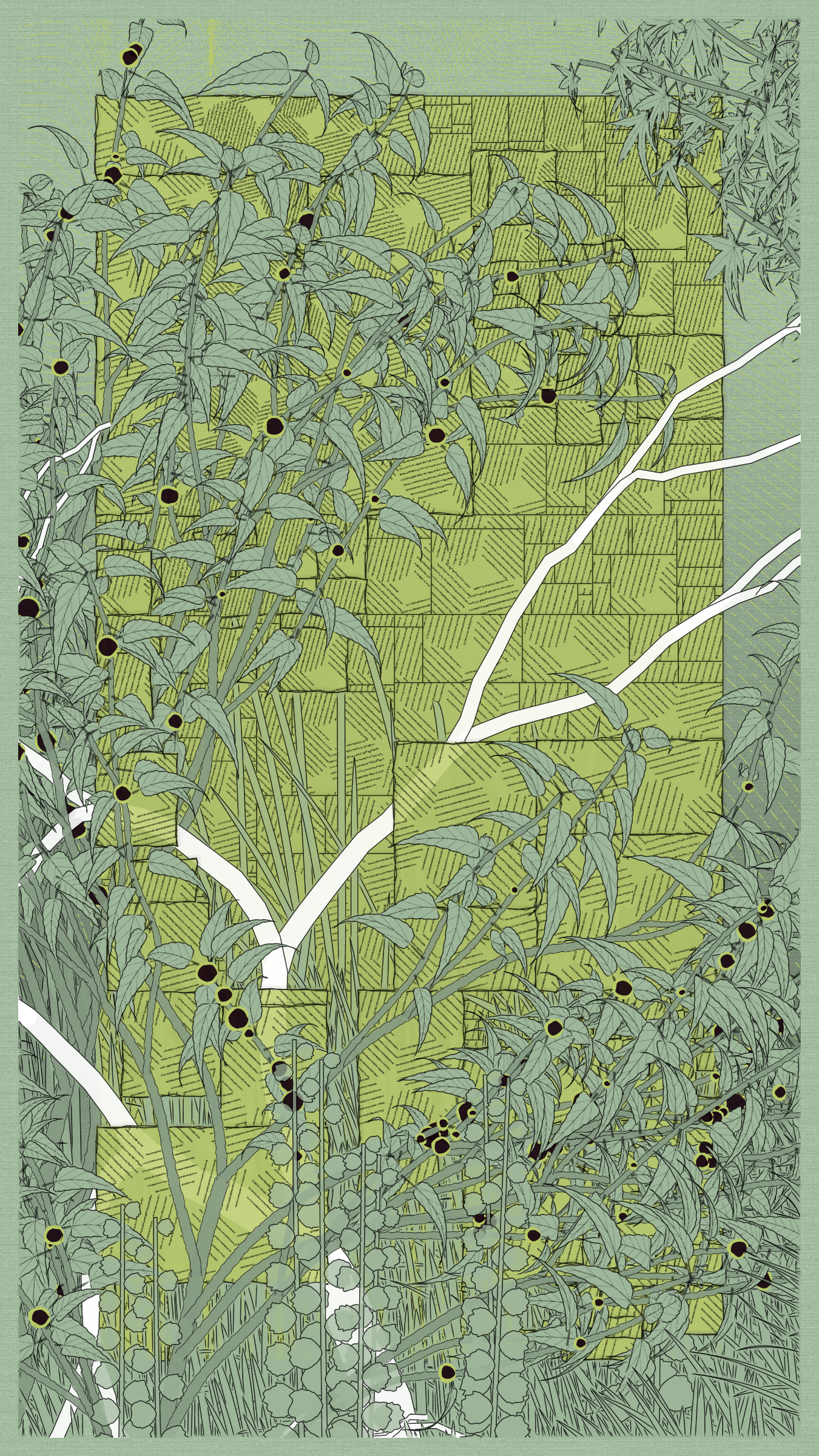 How can one create a work inspired by a city where one has never set foot? Moreover, a place on the other side of the world, whose history and cultural richness are of such dizzying density? I quickly realized that my work could only be imagined, dreamed, imbued with my Western culture, tinged with my distant prejudices. I worked with a visual approach above all, around a few chosen colors, representative tree species, and some clichéd symbols: for example, the composition is organized around 3 abstract shapes, including the circle, directly inspired by the rising sun on the flag, the rectangular shape of a kakemono, or a cityscape.
