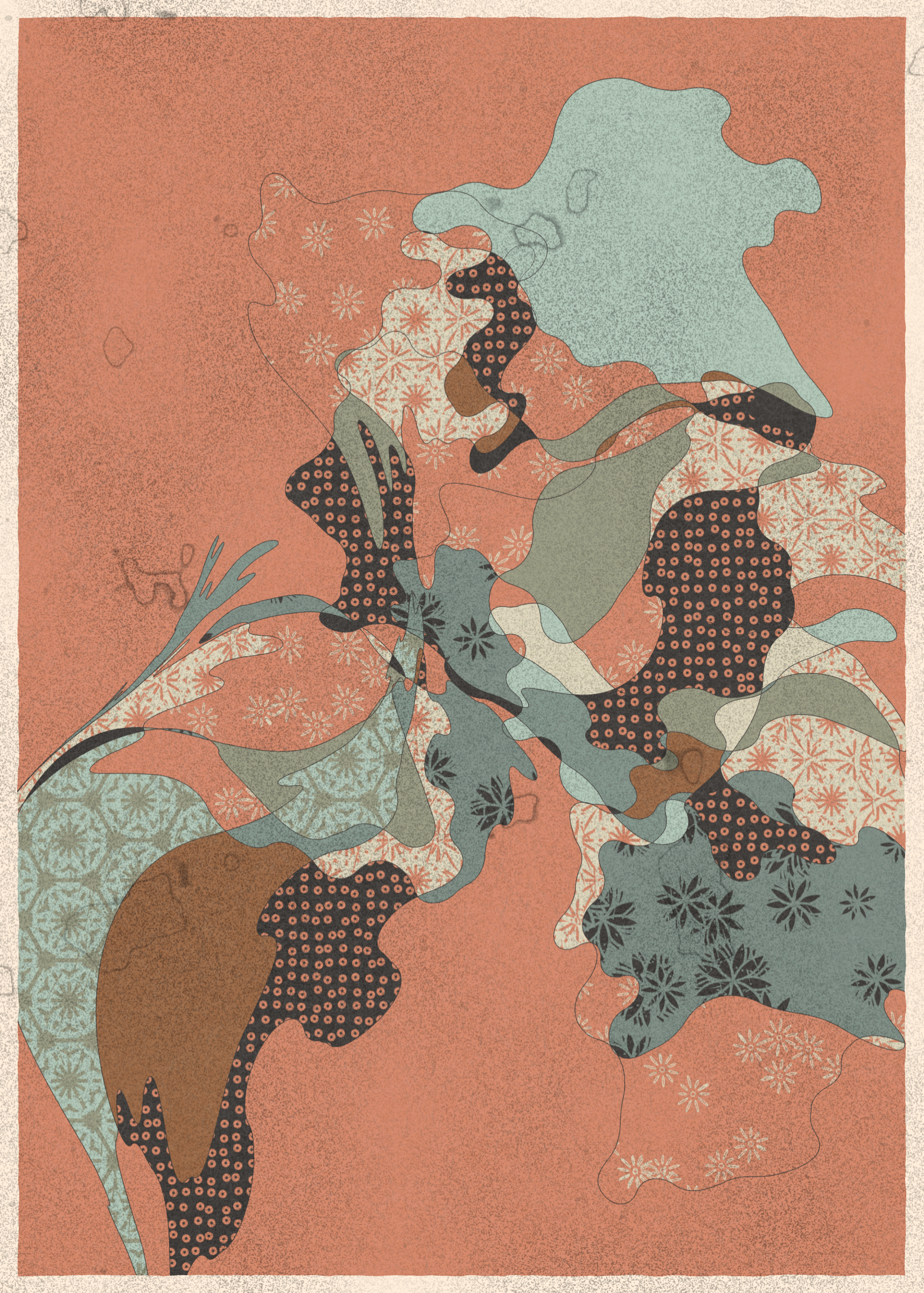 Memories of Qilin is inspired by traditional East Asian art. It channels the sense of movement and fluidity found in classical Chinese brushwork, while drawing from the colors, patterns, and forms of ukiyo-e woodblock prints.