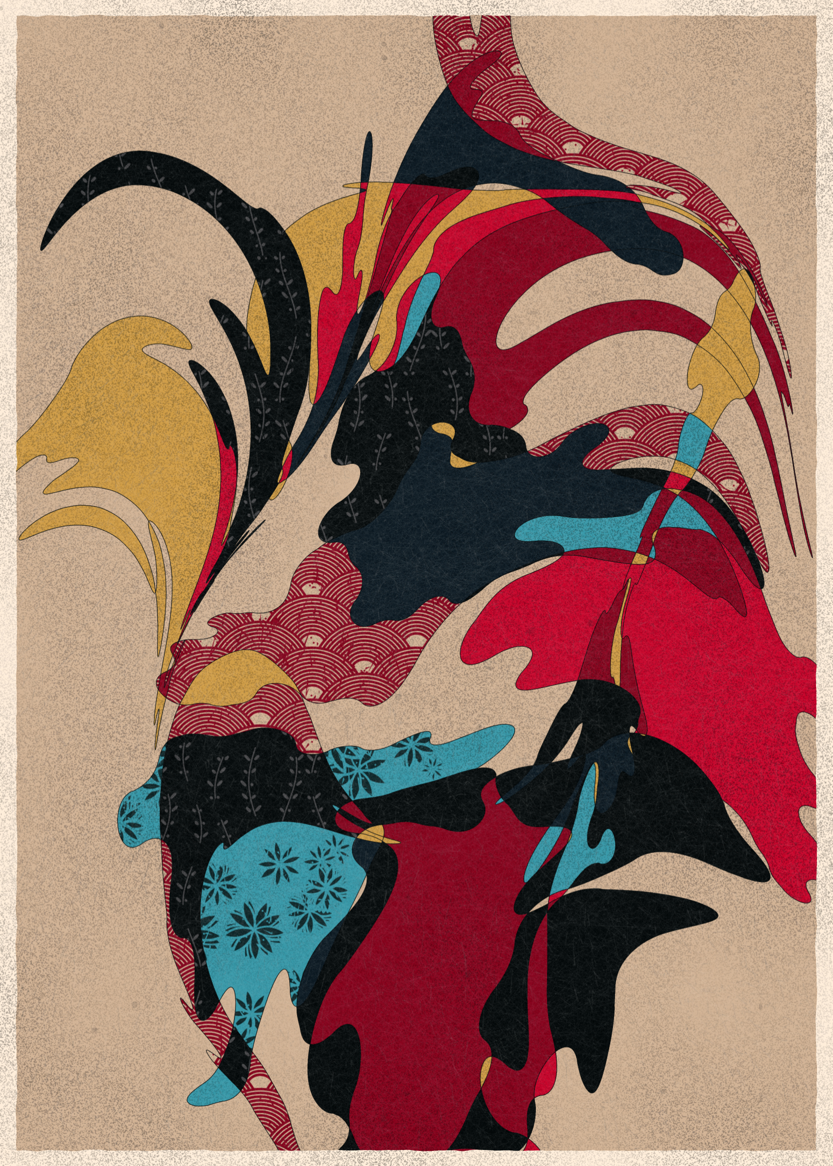 Memories of Qilin is inspired by traditional East Asian art. It channels the sense of movement and fluidity found in classical Chinese brushwork, while drawing from the colors, patterns, and forms of ukiyo-e woodblock prints.