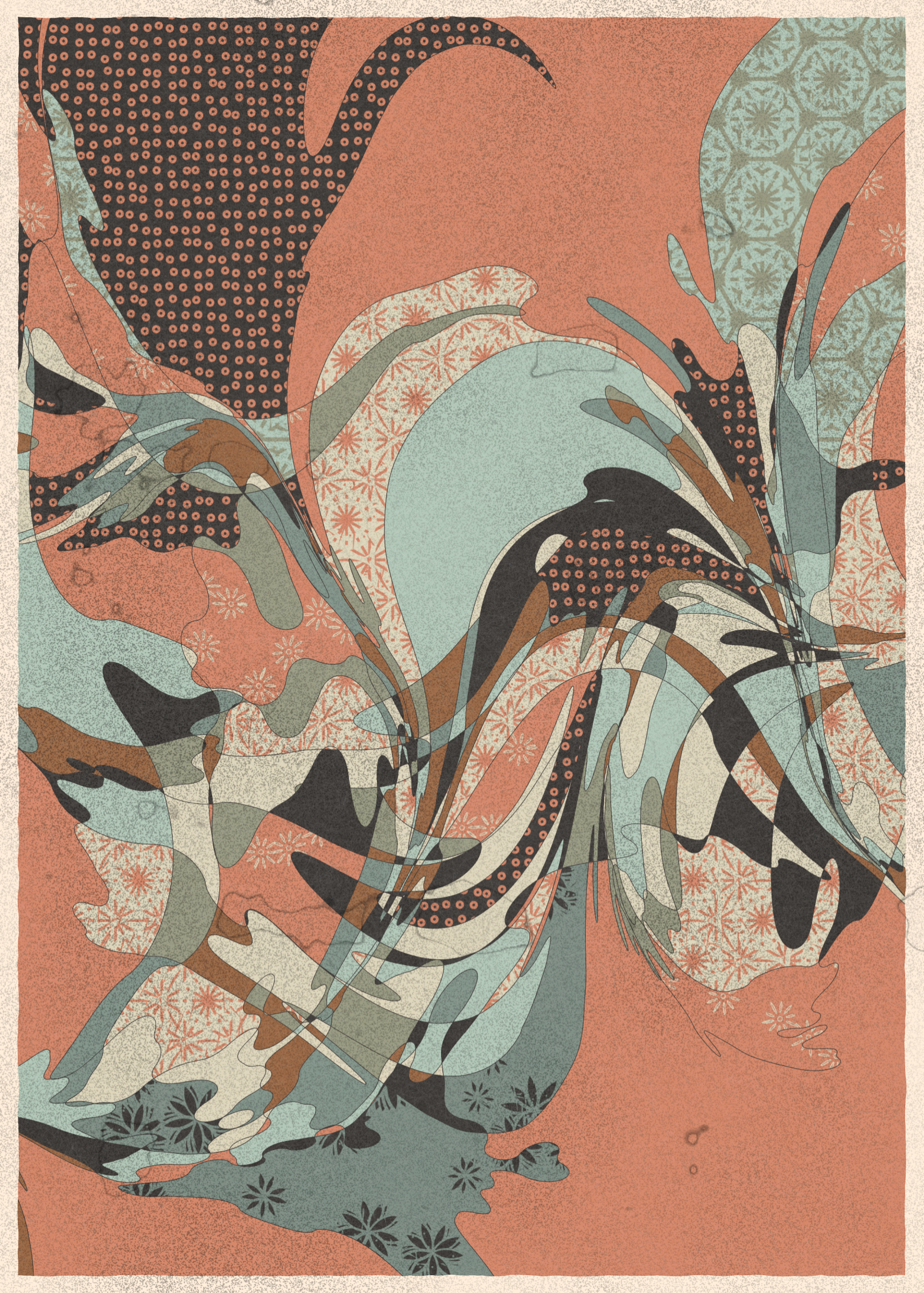 Memories of Qilin is inspired by traditional East Asian art. It channels the sense of movement and fluidity found in classical Chinese brushwork, while drawing from the colors, patterns, and forms of ukiyo-e woodblock prints.