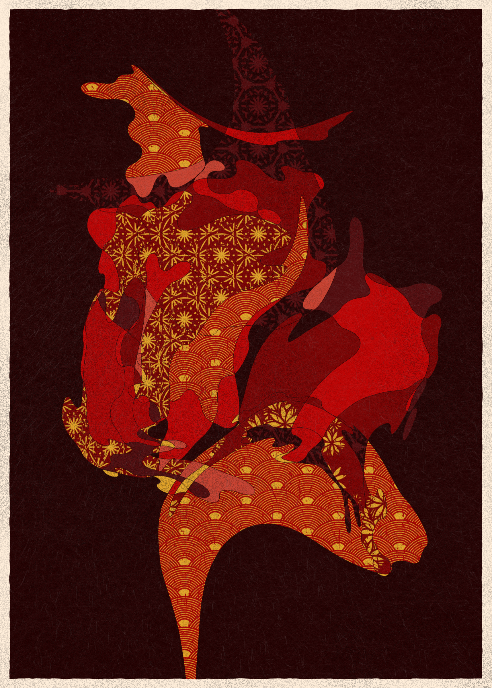 Memories of Qilin is inspired by traditional East Asian art. It channels the sense of movement and fluidity found in classical Chinese brushwork, while drawing from the colors, patterns, and forms of ukiyo-e woodblock prints.