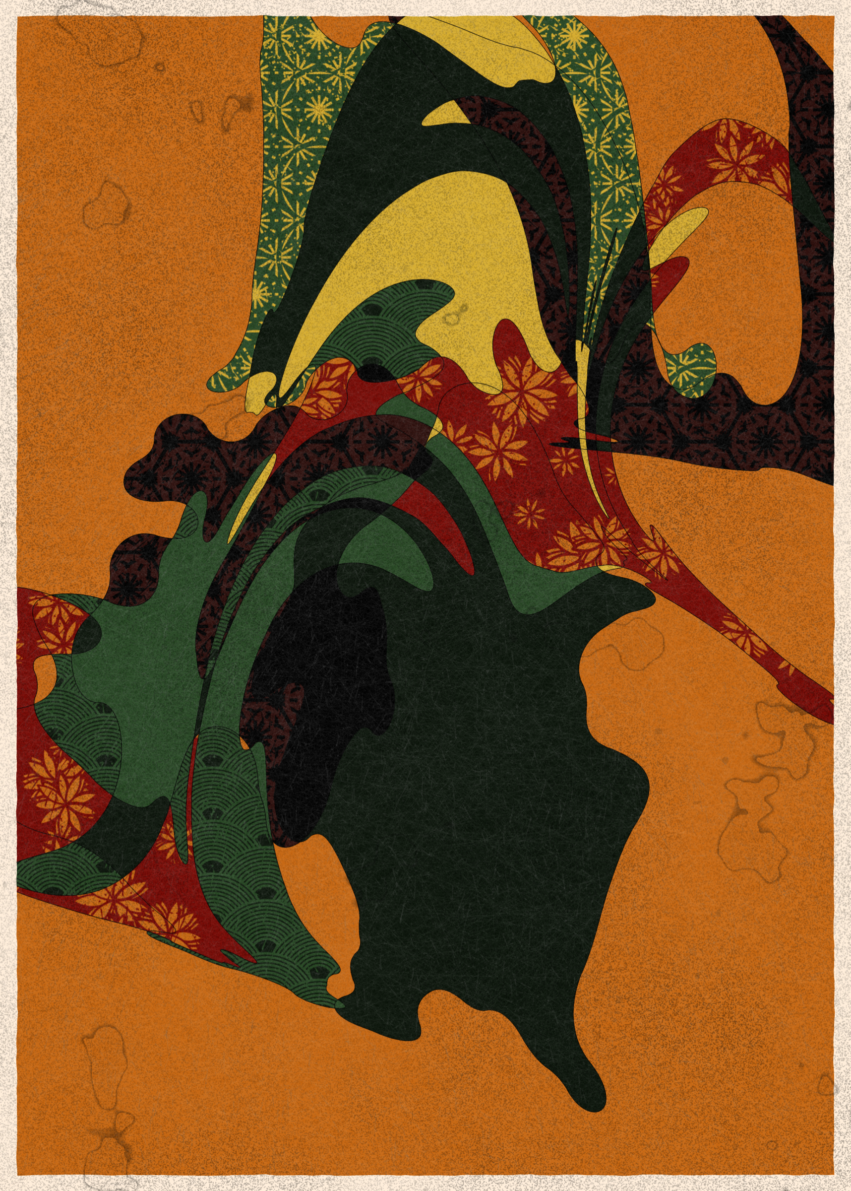Memories of Qilin is inspired by traditional East Asian art. It channels the sense of movement and fluidity found in classical Chinese brushwork, while drawing from the colors, patterns, and forms of ukiyo-e woodblock prints.