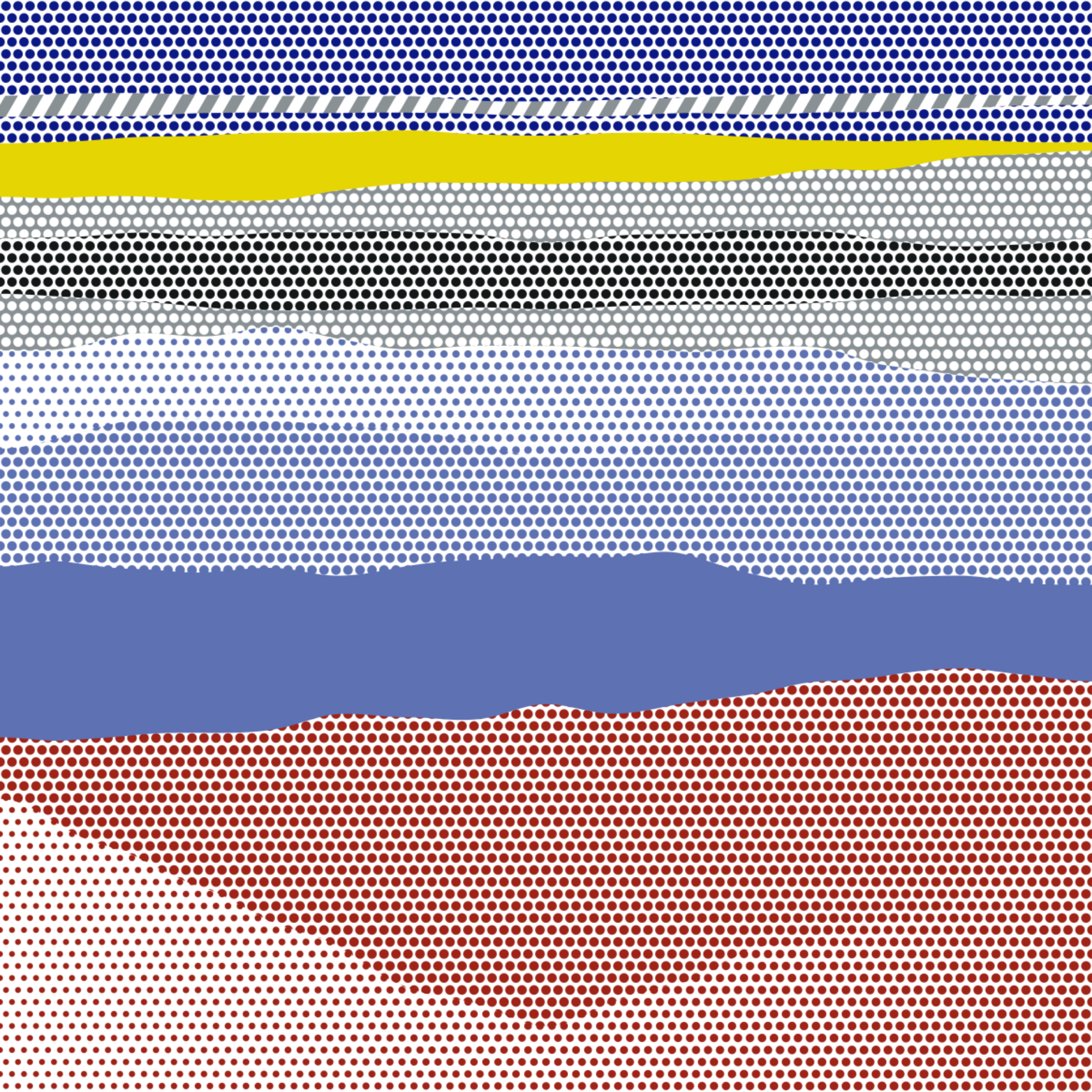 An ode to Roy Lichtenstein, incorporating his iconic version of Ben-Day dots, halftone dots, angled stripes, and solid color patches. Inspired by Roy's sea and landscape paintings, each artwork generates a unique combination of patterns, shapes, and colors.