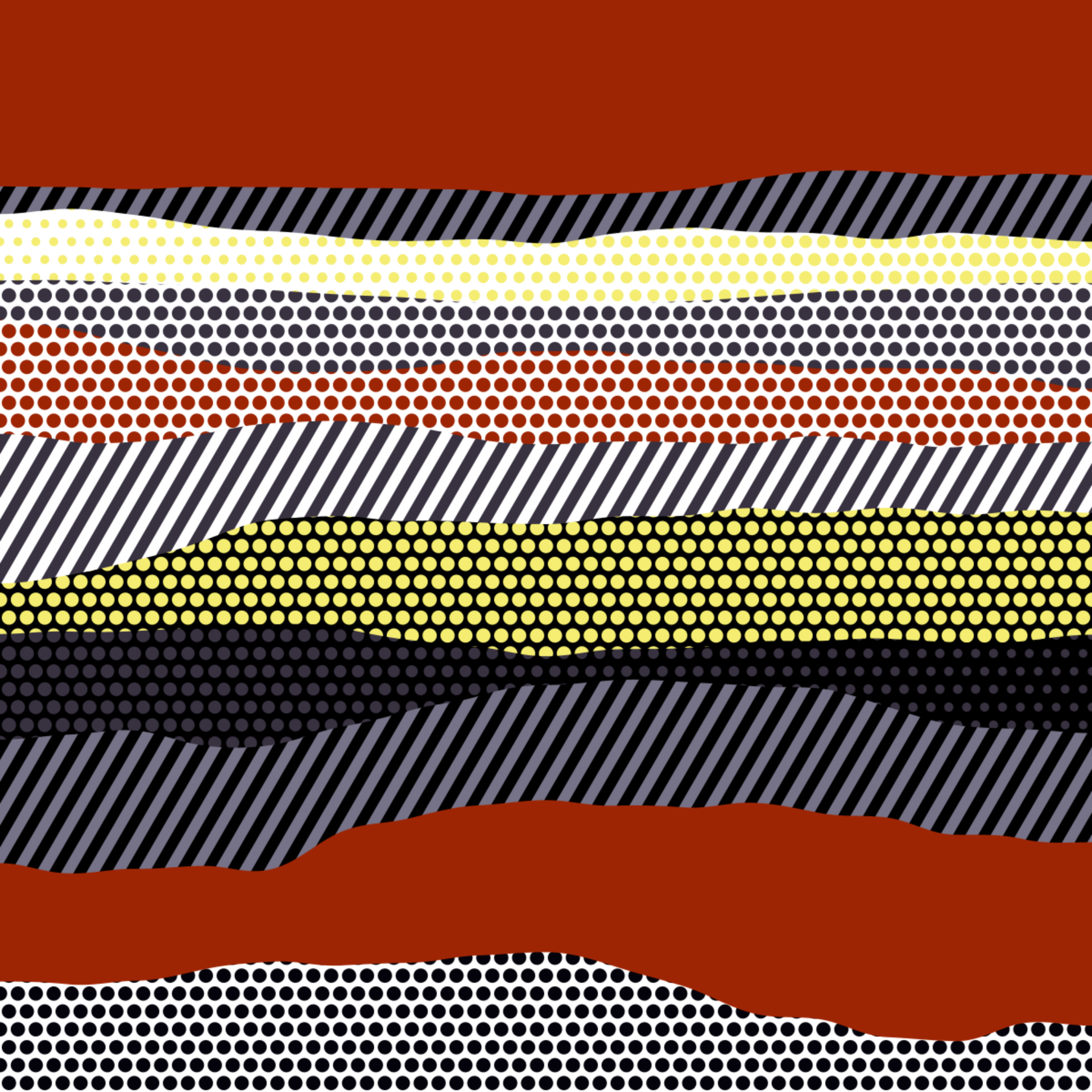 An ode to Roy Lichtenstein, incorporating his iconic version of Ben-Day dots, halftone dots, angled stripes, and solid color patches. Inspired by Roy's sea and landscape paintings, each artwork generates a unique combination of patterns, shapes, and colors.