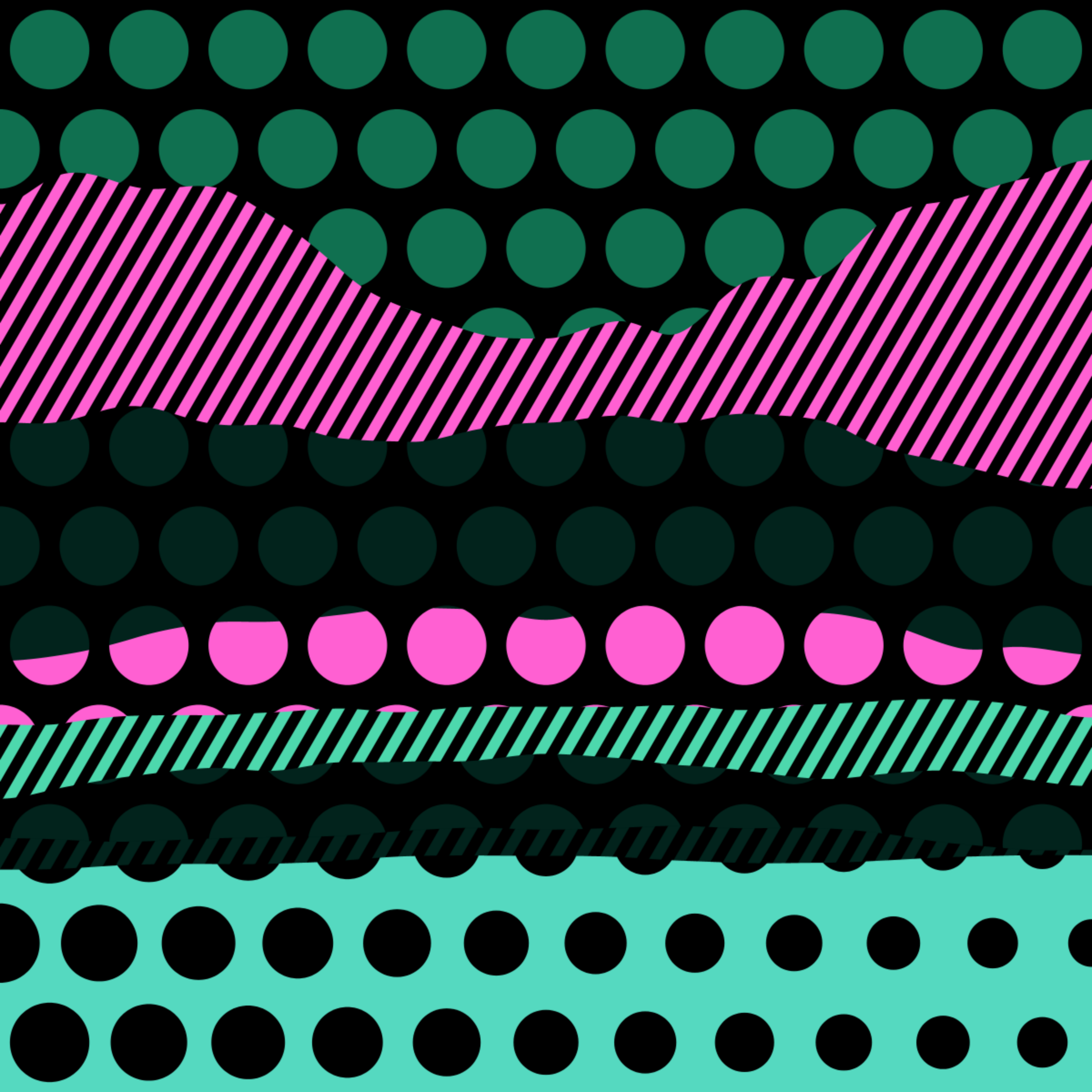 An ode to Roy Lichtenstein, incorporating his iconic version of Ben-Day dots, halftone dots, angled stripes, and solid color patches. Inspired by Roy's sea and landscape paintings, each artwork generates a unique combination of patterns, shapes, and colors.