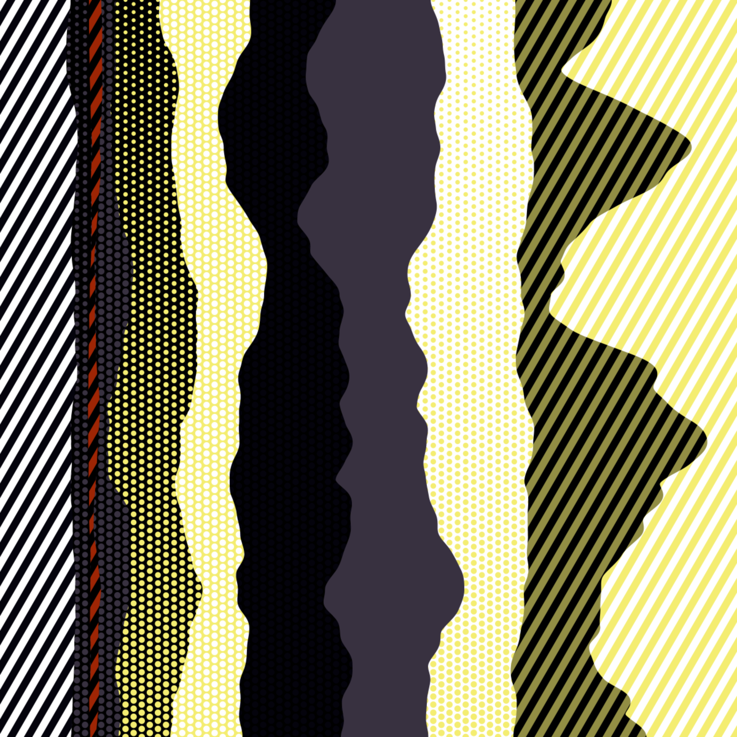 An ode to Roy Lichtenstein, incorporating his iconic version of Ben-Day dots, halftone dots, angled stripes, and solid color patches. Inspired by Roy's sea and landscape paintings, each artwork generates a unique combination of patterns, shapes, and colors.
