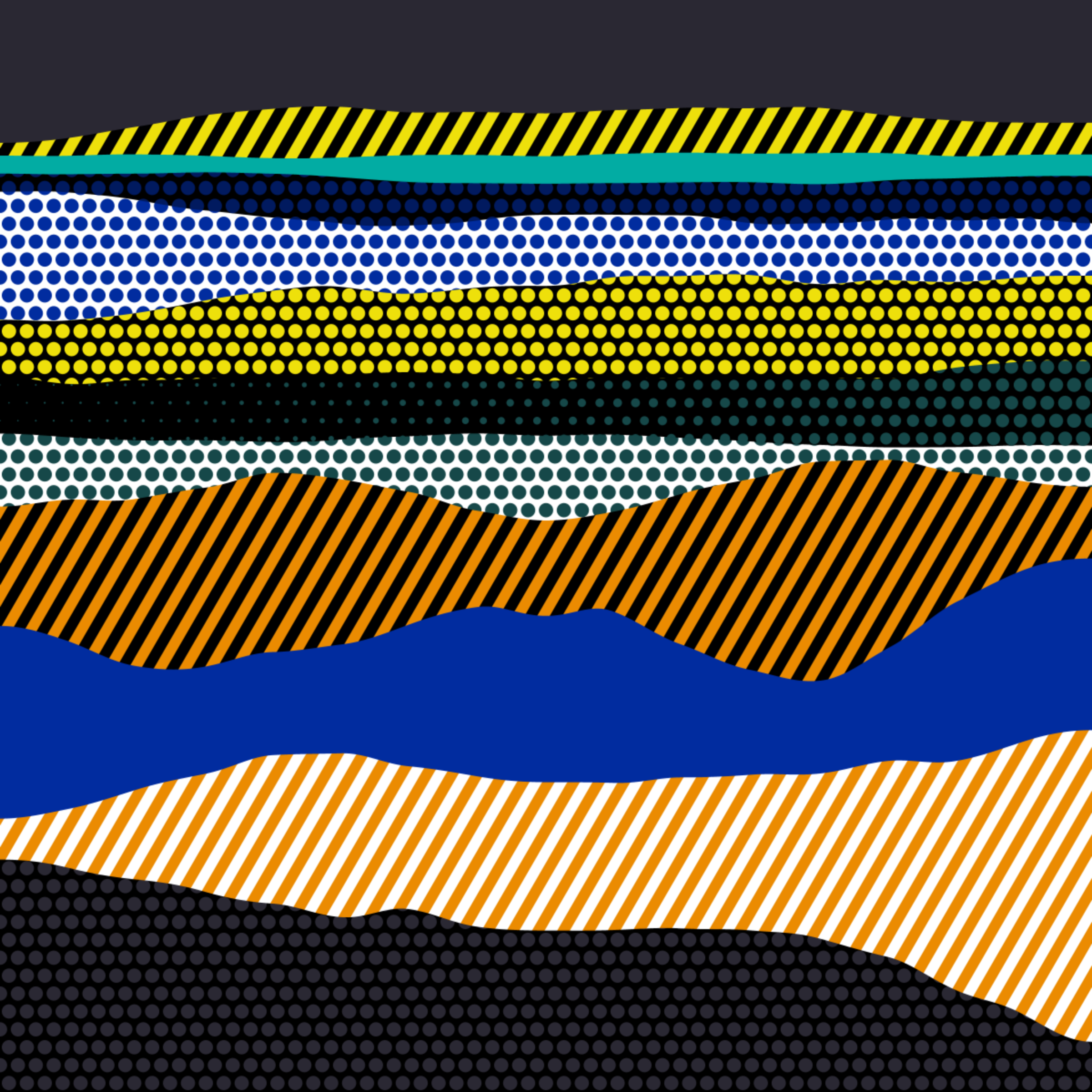 An ode to Roy Lichtenstein, incorporating his iconic version of Ben-Day dots, halftone dots, angled stripes, and solid color patches. Inspired by Roy's sea and landscape paintings, each artwork generates a unique combination of patterns, shapes, and colors.