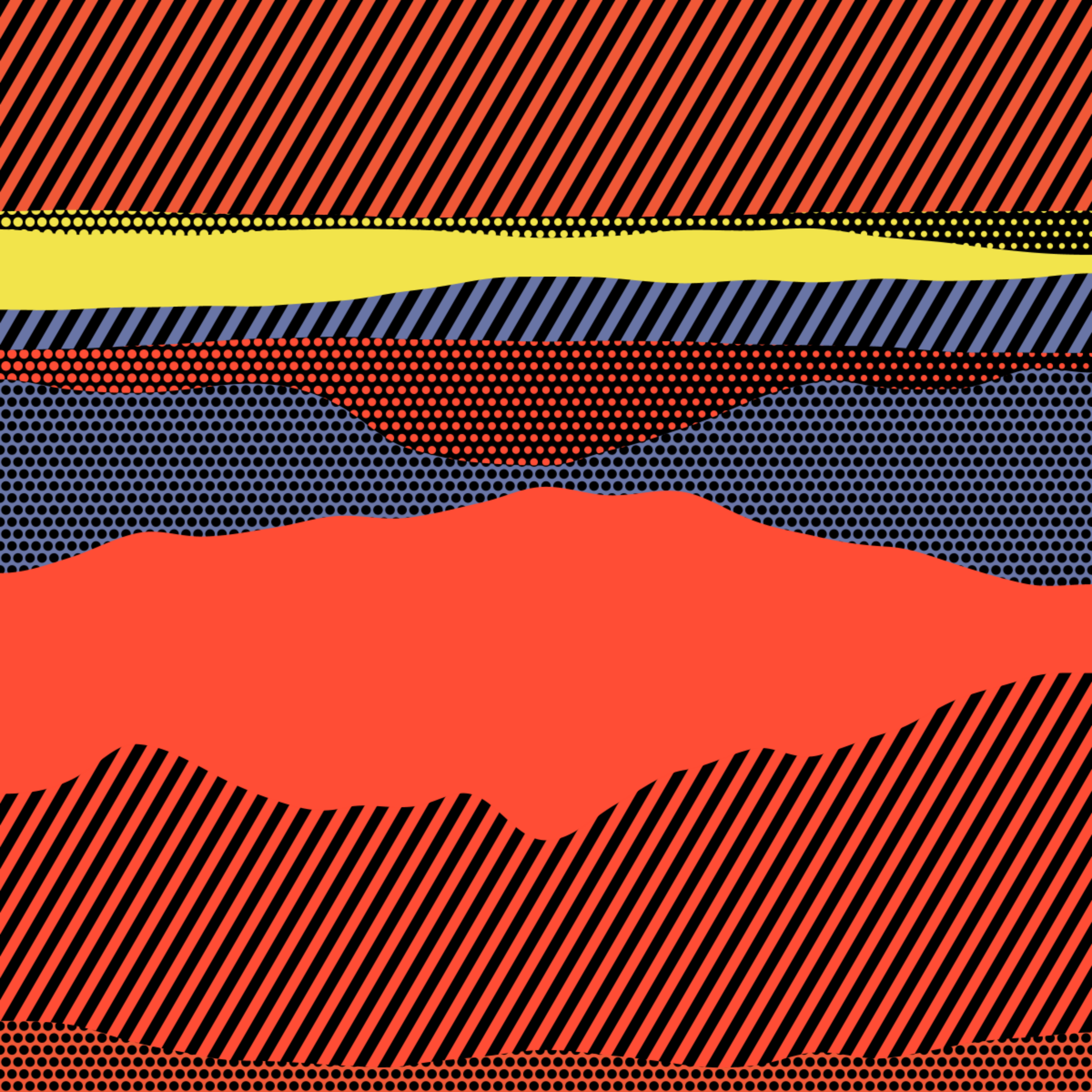 An ode to Roy Lichtenstein, incorporating his iconic version of Ben-Day dots, halftone dots, angled stripes, and solid color patches. Inspired by Roy's sea and landscape paintings, each artwork generates a unique combination of patterns, shapes, and colors.