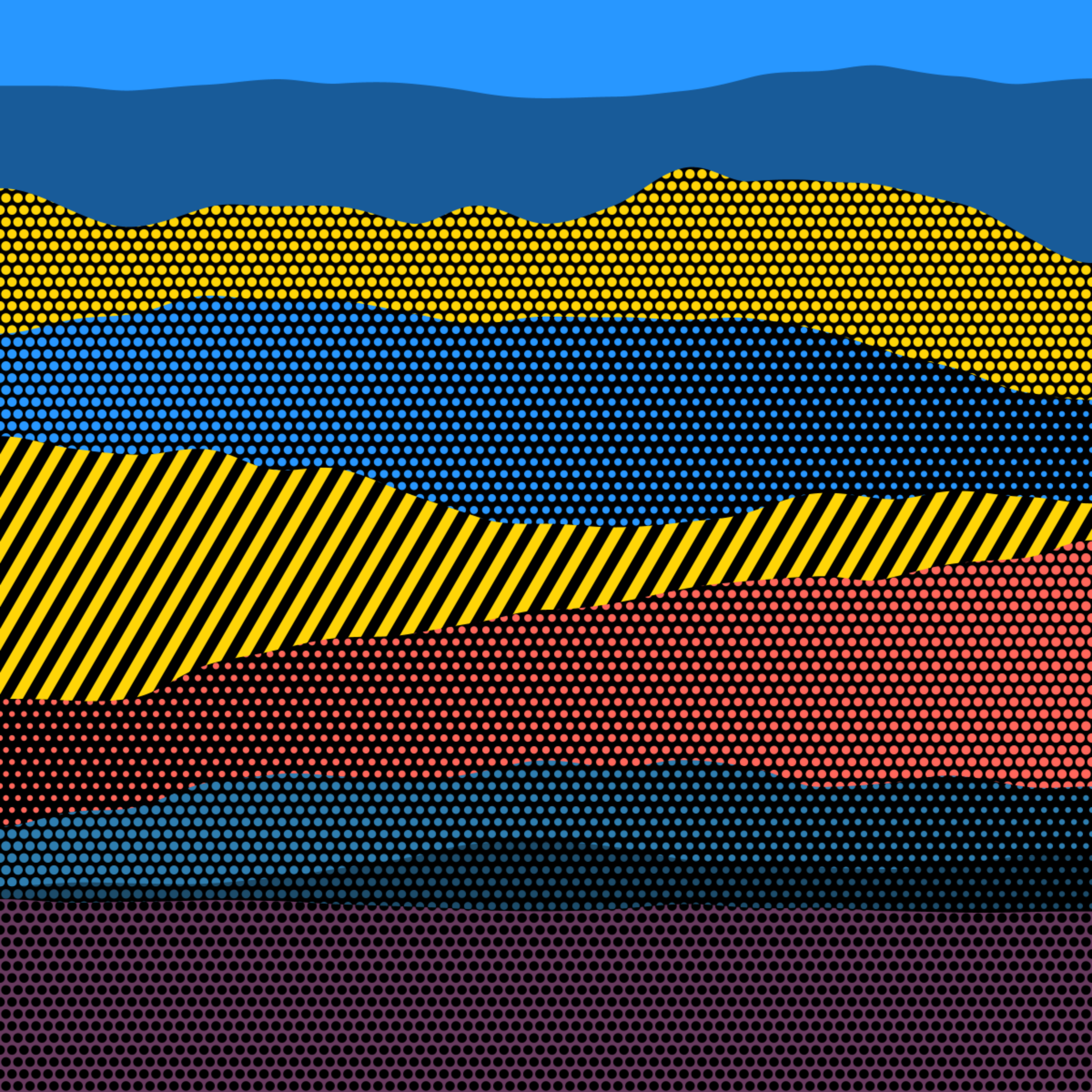 An ode to Roy Lichtenstein, incorporating his iconic version of Ben-Day dots, halftone dots, angled stripes, and solid color patches. Inspired by Roy's sea and landscape paintings, each artwork generates a unique combination of patterns, shapes, and colors.