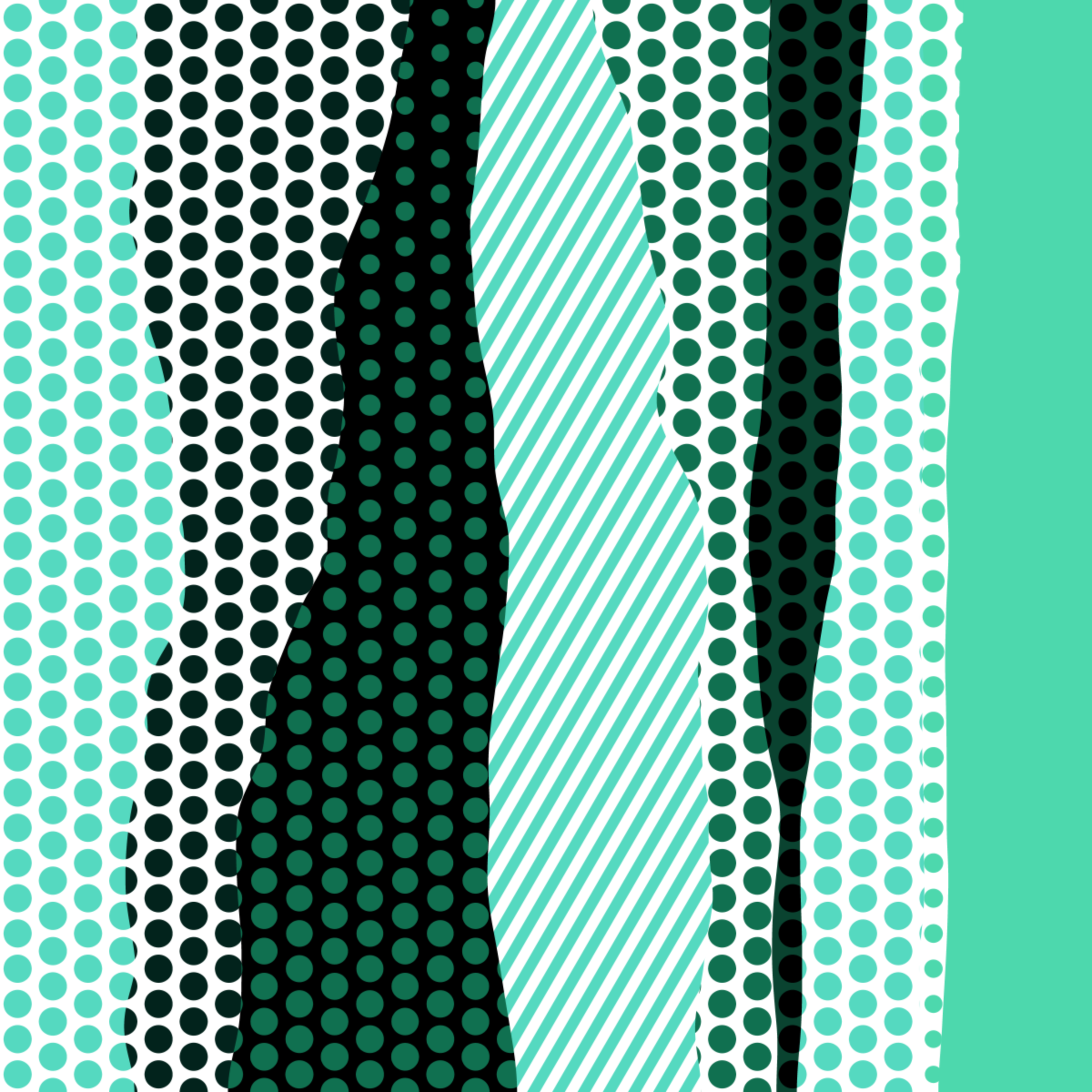 An ode to Roy Lichtenstein, incorporating his iconic version of Ben-Day dots, halftone dots, angled stripes, and solid color patches. Inspired by Roy's sea and landscape paintings, each artwork generates a unique combination of patterns, shapes, and colors.