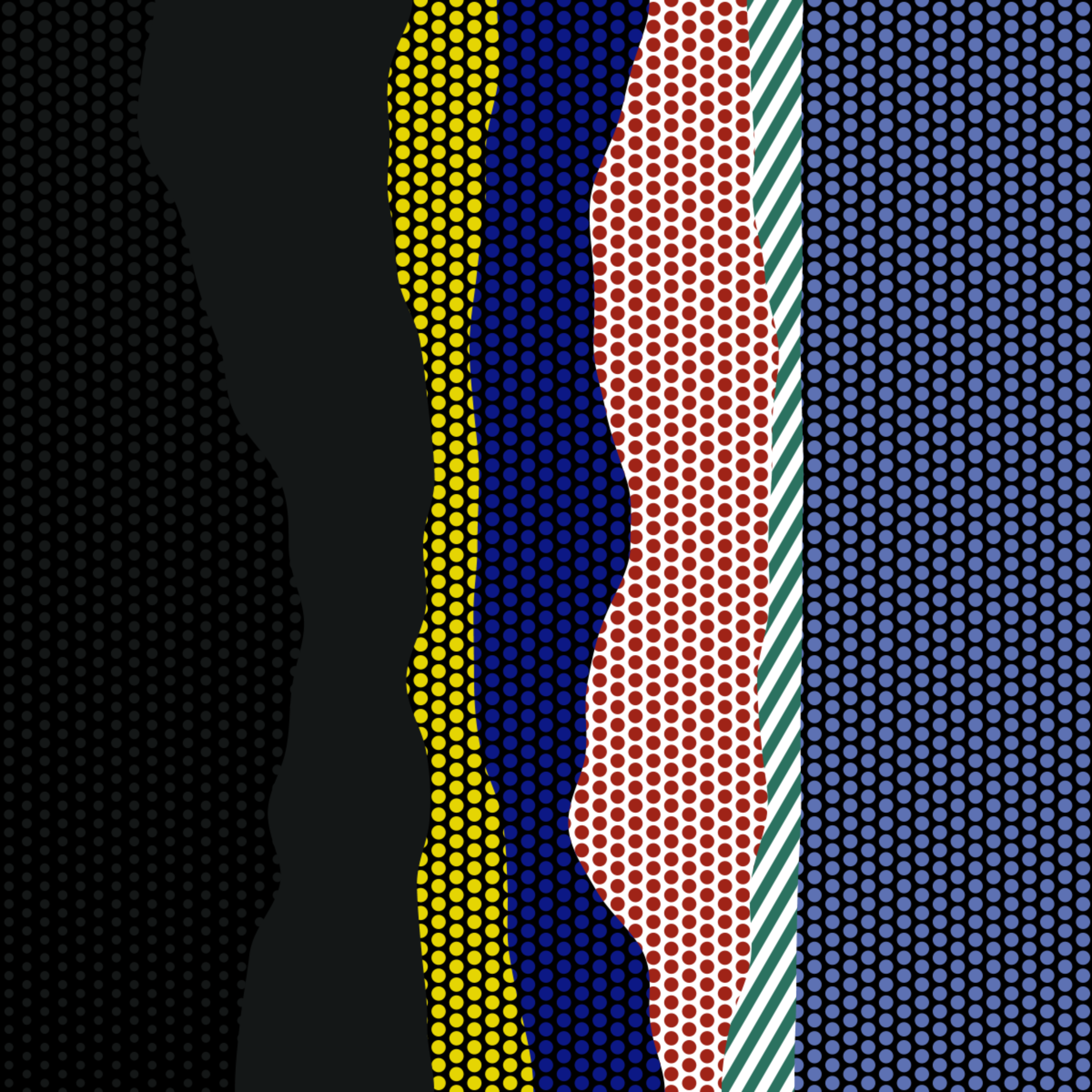 An ode to Roy Lichtenstein, incorporating his iconic version of Ben-Day dots, halftone dots, angled stripes, and solid color patches. Inspired by Roy's sea and landscape paintings, each artwork generates a unique combination of patterns, shapes, and colors.