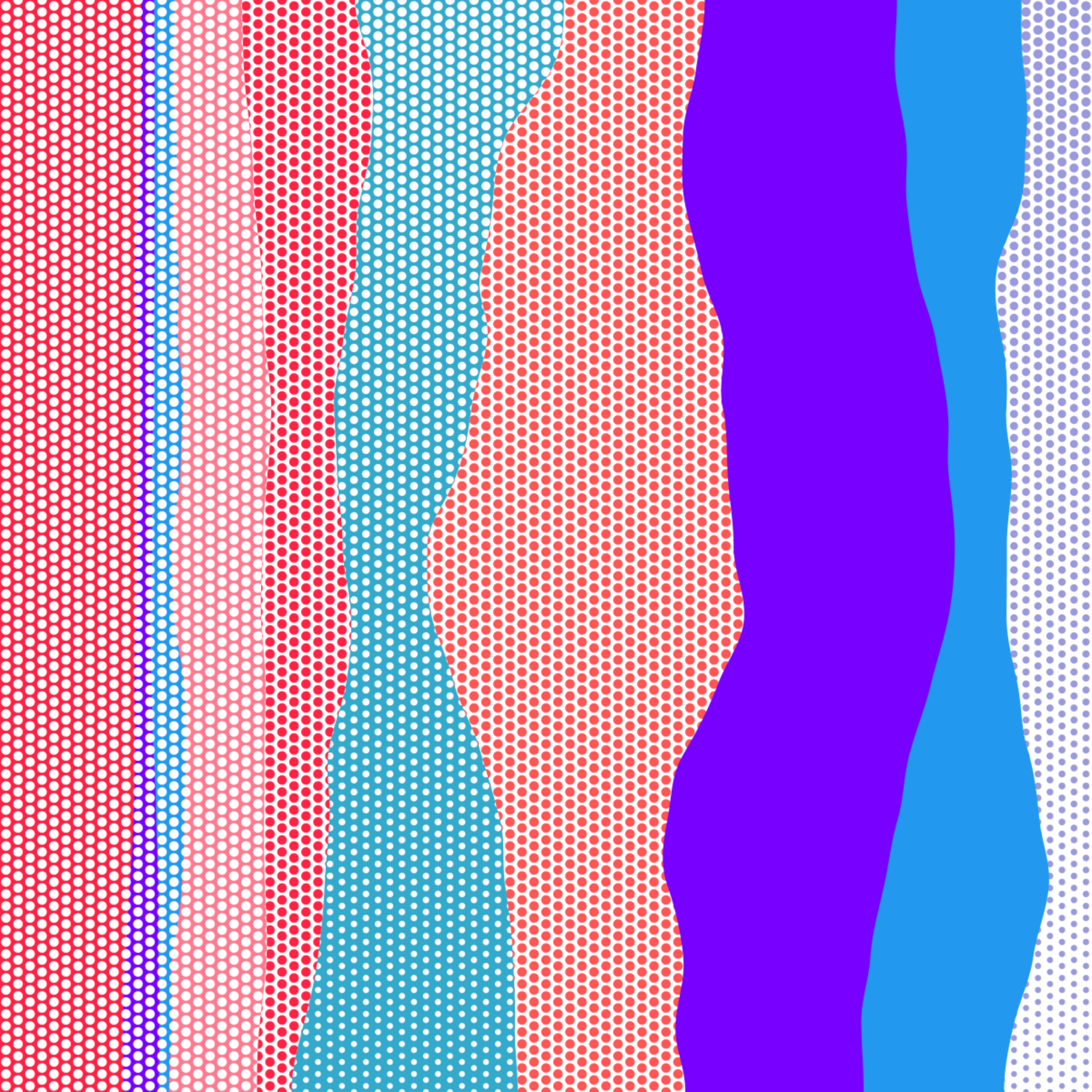 An ode to Roy Lichtenstein, incorporating his iconic version of Ben-Day dots, halftone dots, angled stripes, and solid color patches. Inspired by Roy's sea and landscape paintings, each artwork generates a unique combination of patterns, shapes, and colors.