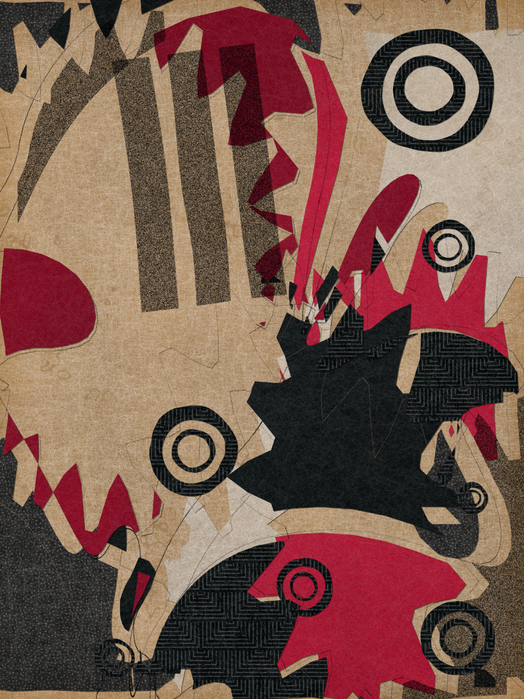Much like the practice of collage itself, *Off Script* elicits a deeply sensorial experience. Generative textures induce a sense of tactility, while askew jagged shapes evoke the punctuated off-beat sounds of jazz. With its synesthetic qualities, the series challenges its own medium, creating a dialogue between the immateriality of digital representation and the corporality of the physical realm.