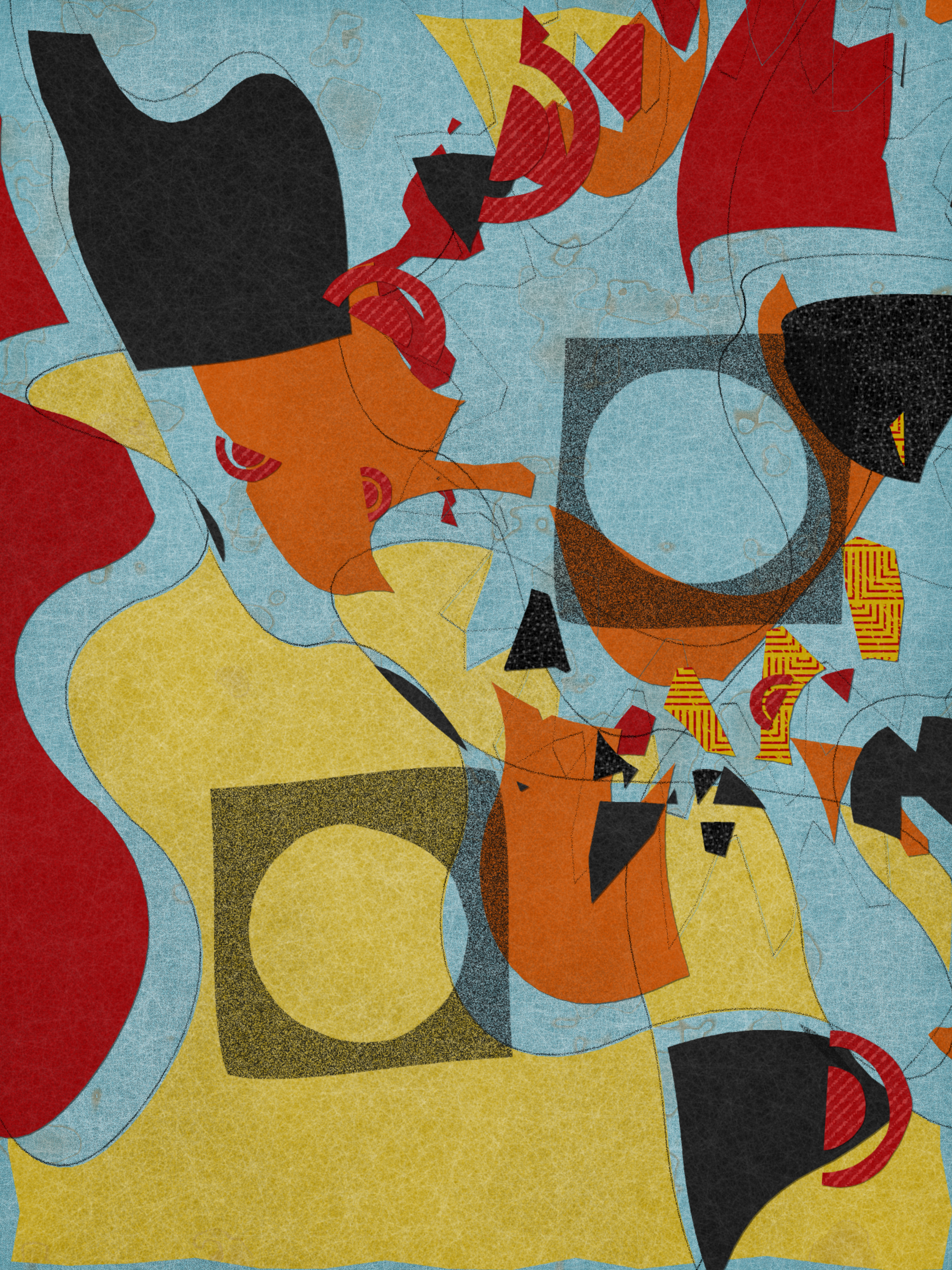 Much like the practice of collage itself, *Off Script* elicits a deeply sensorial experience. Generative textures induce a sense of tactility, while askew jagged shapes evoke the punctuated off-beat sounds of jazz. With its synesthetic qualities, the series challenges its own medium, creating a dialogue between the immateriality of digital representation and the corporality of the physical realm.