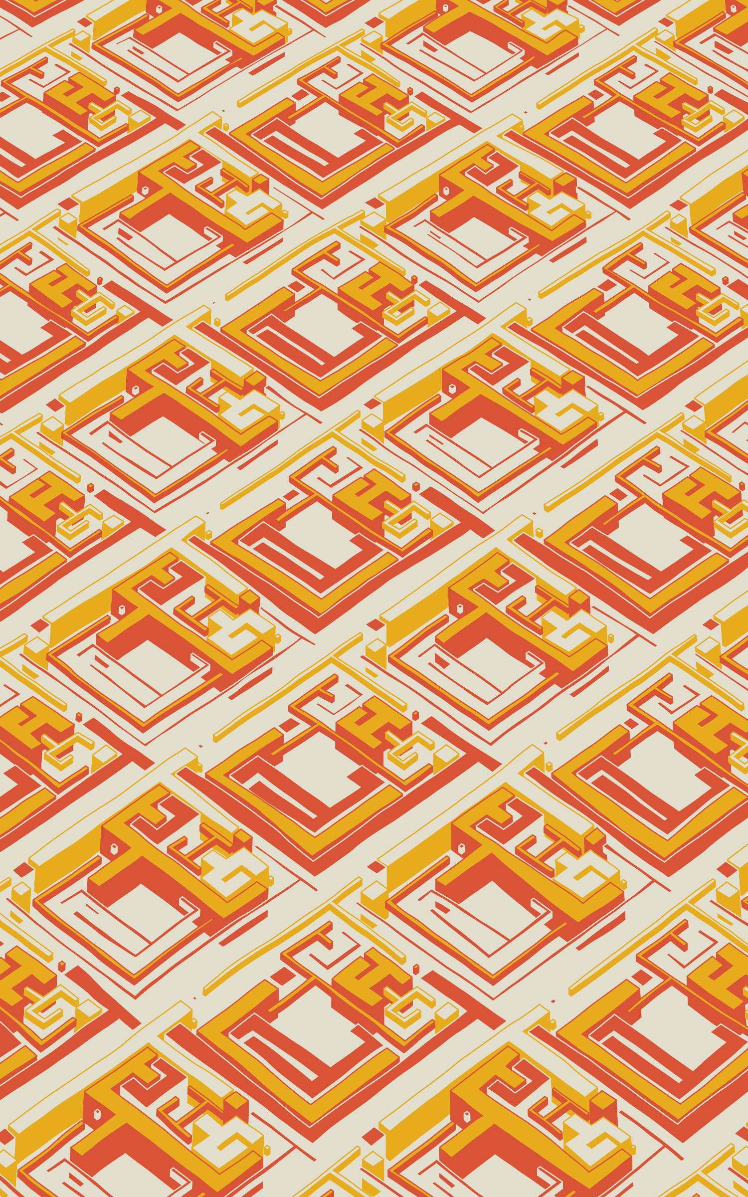 This project explores the visual expression of various planar symmetries by using colourful, maze-like structures. The precision of these mathematical patterns are offset by a playful use of dimensionality and an imperfect grid as basis for the linework.