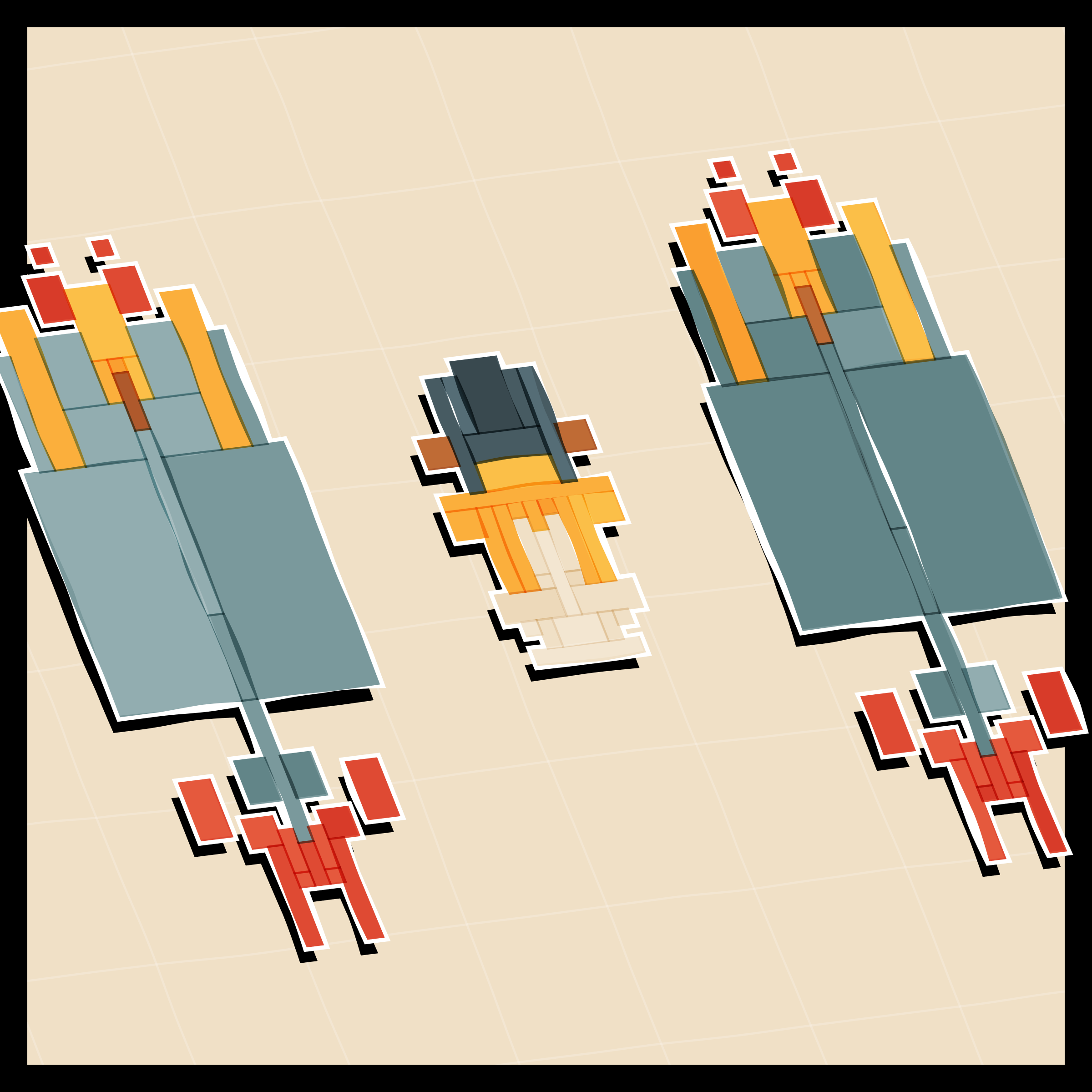 Perfectly symmetric - imperfectly drawn. Exploring the contrast between precision and chance in a playful spacecraft / papercraft setting.