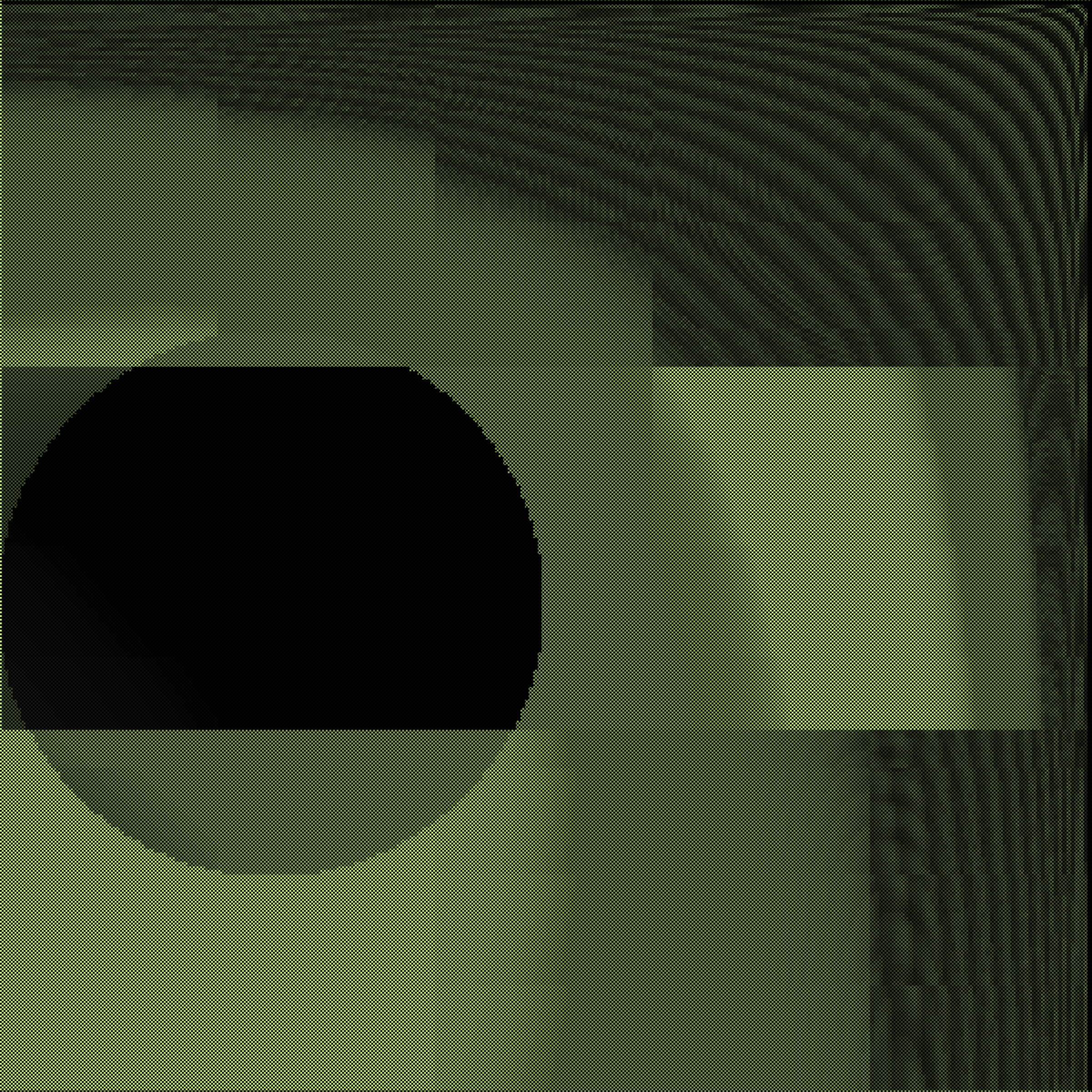 This project is a visual representation of realities that are out of phase. Interference patterns, colorful echoes, and emerging secrets are explored. Mathematical functions produce constant motion, but rarely, a peaceful scene resolves within the chaos. Click or press any key to pause. *Photosensitive seizure warning: These artworks contain flashing colors and moving patterns.