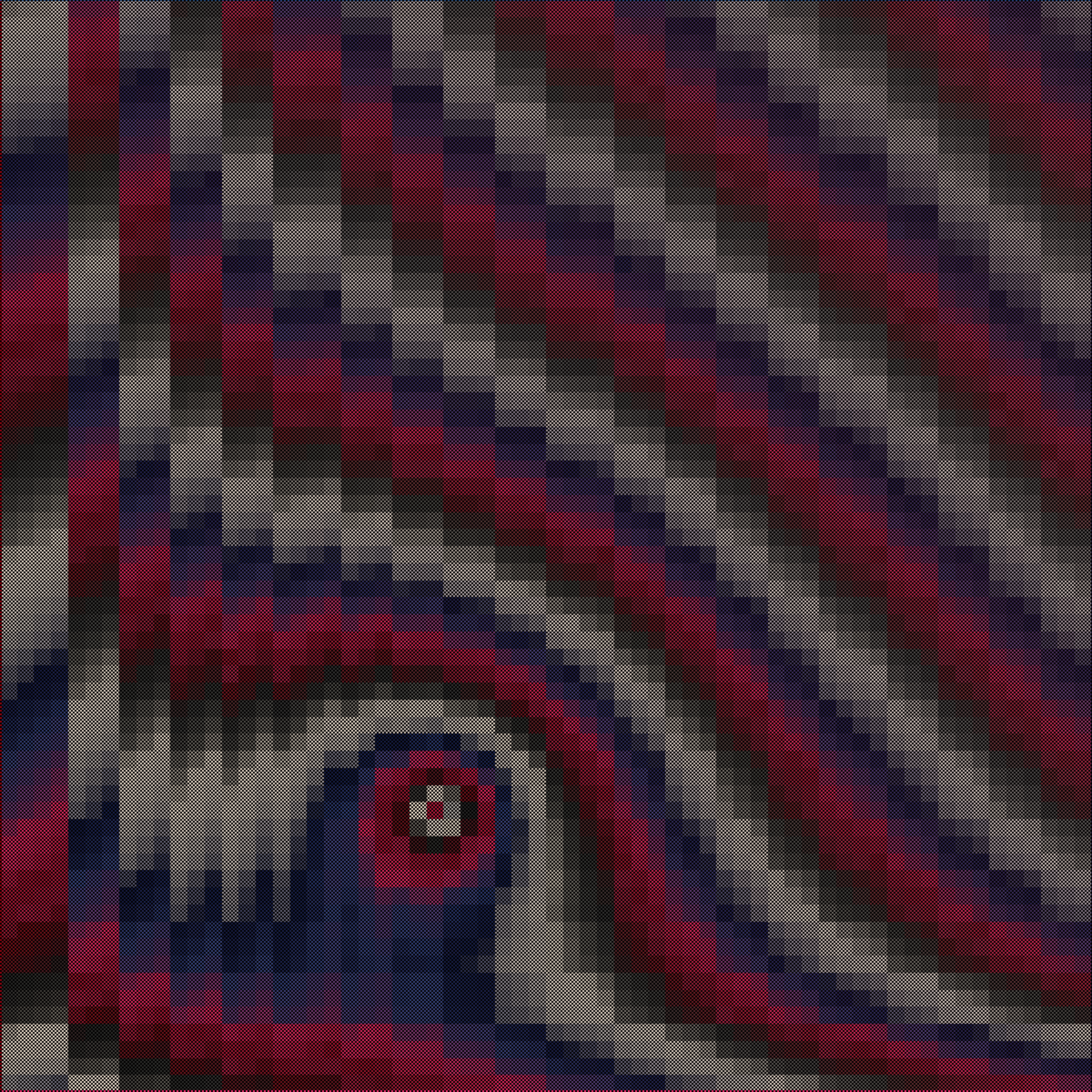 This project is a visual representation of realities that are out of phase. Interference patterns, colorful echoes, and emerging secrets are explored. Mathematical functions produce constant motion, but rarely, a peaceful scene resolves within the chaos. Click or press any key to pause. *Photosensitive seizure warning: These artworks contain flashing colors and moving patterns.