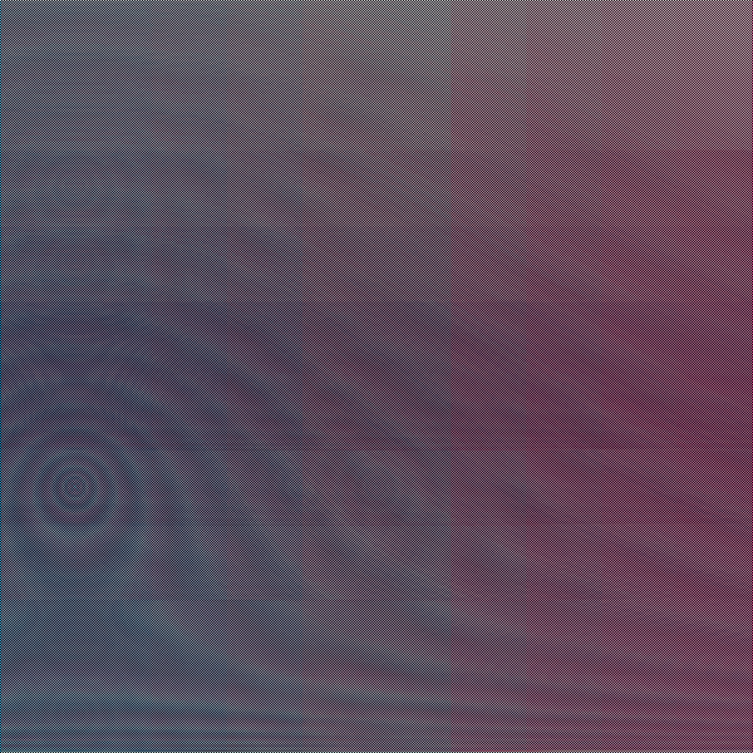 This project is a visual representation of realities that are out of phase. Interference patterns, colorful echoes, and emerging secrets are explored. Mathematical functions produce constant motion, but rarely, a peaceful scene resolves within the chaos. Click or press any key to pause. *Photosensitive seizure warning: These artworks contain flashing colors and moving patterns.
