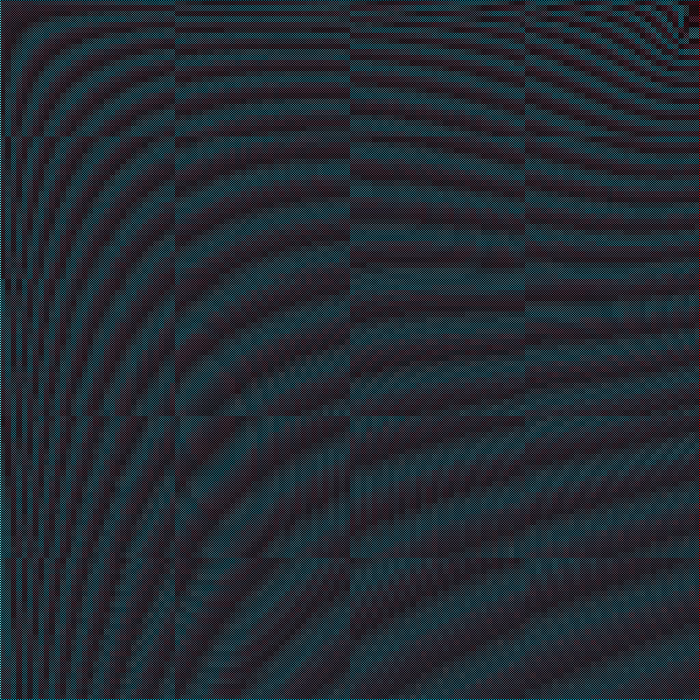 This project is a visual representation of realities that are out of phase. Interference patterns, colorful echoes, and emerging secrets are explored. Mathematical functions produce constant motion, but rarely, a peaceful scene resolves within the chaos. Click or press any key to pause. *Photosensitive seizure warning: These artworks contain flashing colors and moving patterns.
