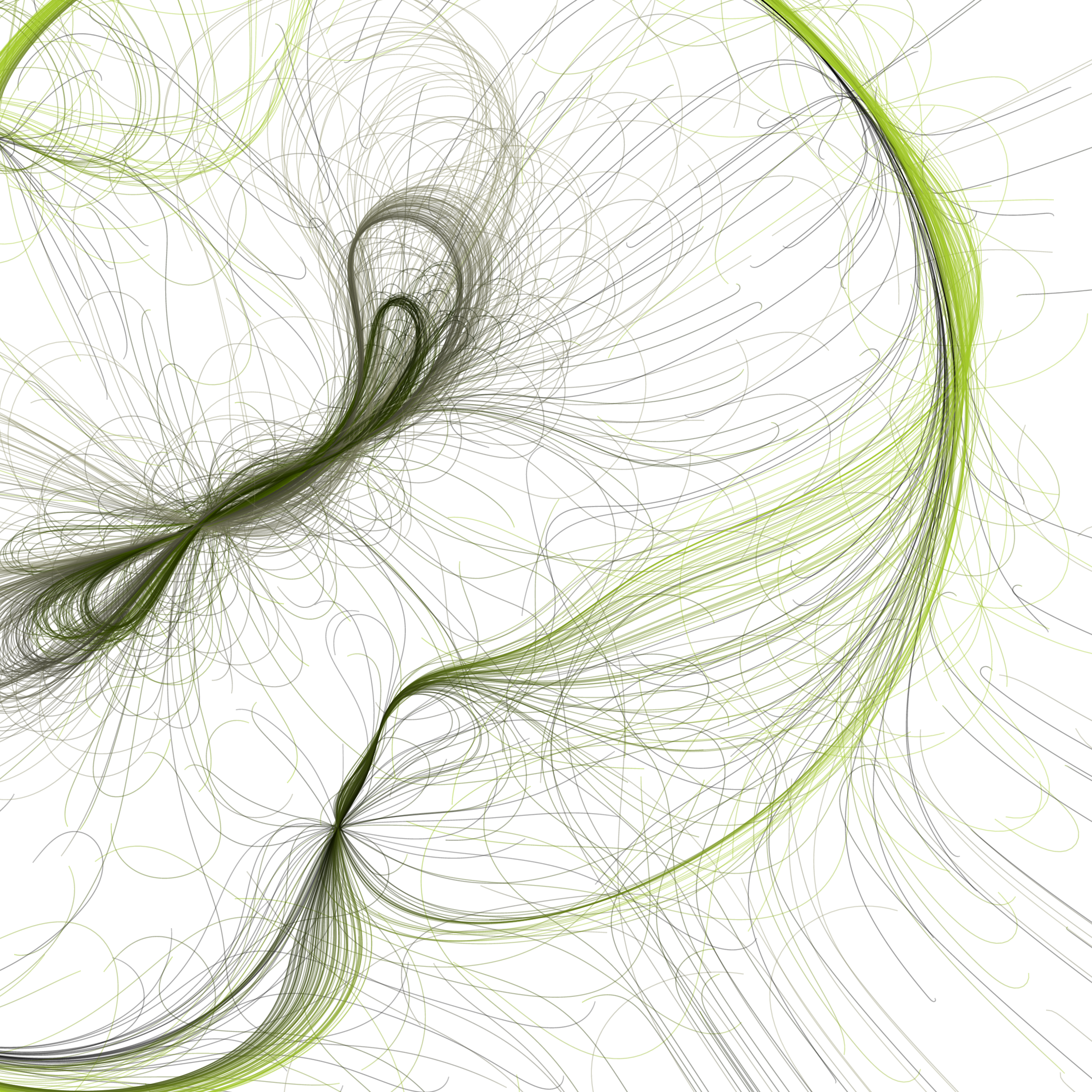 “Phototaxis” is a simulated environment populated by simple machines. After Valentino Braitenberg’s 1984 book “Vehicles,” there are four kinds of machines with different wiring and behaviors: Explorers, Aggressors, Lovers, and Cowards. Each line charts the history of one machine’s movement. The core of this code was the foundation for my MicroImage series of works dating back to 2001. I’ve worked on it in fits and starts since then, and in 2021 it was further developed for Art Blocks. Press ‘P’ to play/pause, ‘B’ for the big bang, ‘1’–’5’ to change the magnification, and ‘L’ to reveal the lights’ locations.