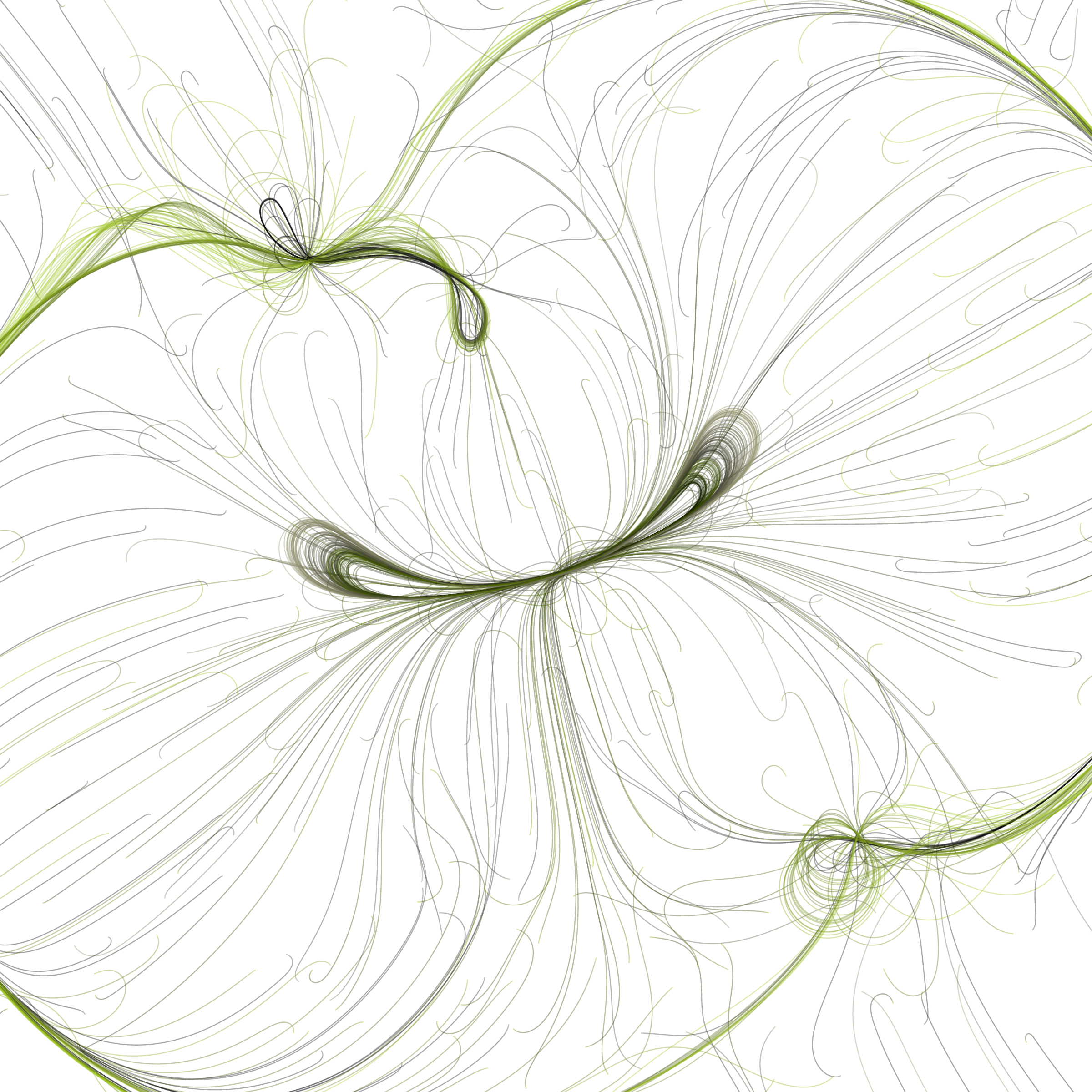 “Phototaxis” is a simulated environment populated by simple machines. After Valentino Braitenberg’s 1984 book “Vehicles,” there are four kinds of machines with different wiring and behaviors: Explorers, Aggressors, Lovers, and Cowards. Each line charts the history of one machine’s movement. The core of this code was the foundation for my MicroImage series of works dating back to 2001. I’ve worked on it in fits and starts since then, and in 2021 it was further developed for Art Blocks. Press ‘P’ to play/pause, ‘B’ for the big bang, ‘1’–’5’ to change the magnification, and ‘L’ to reveal the lights’ locations.