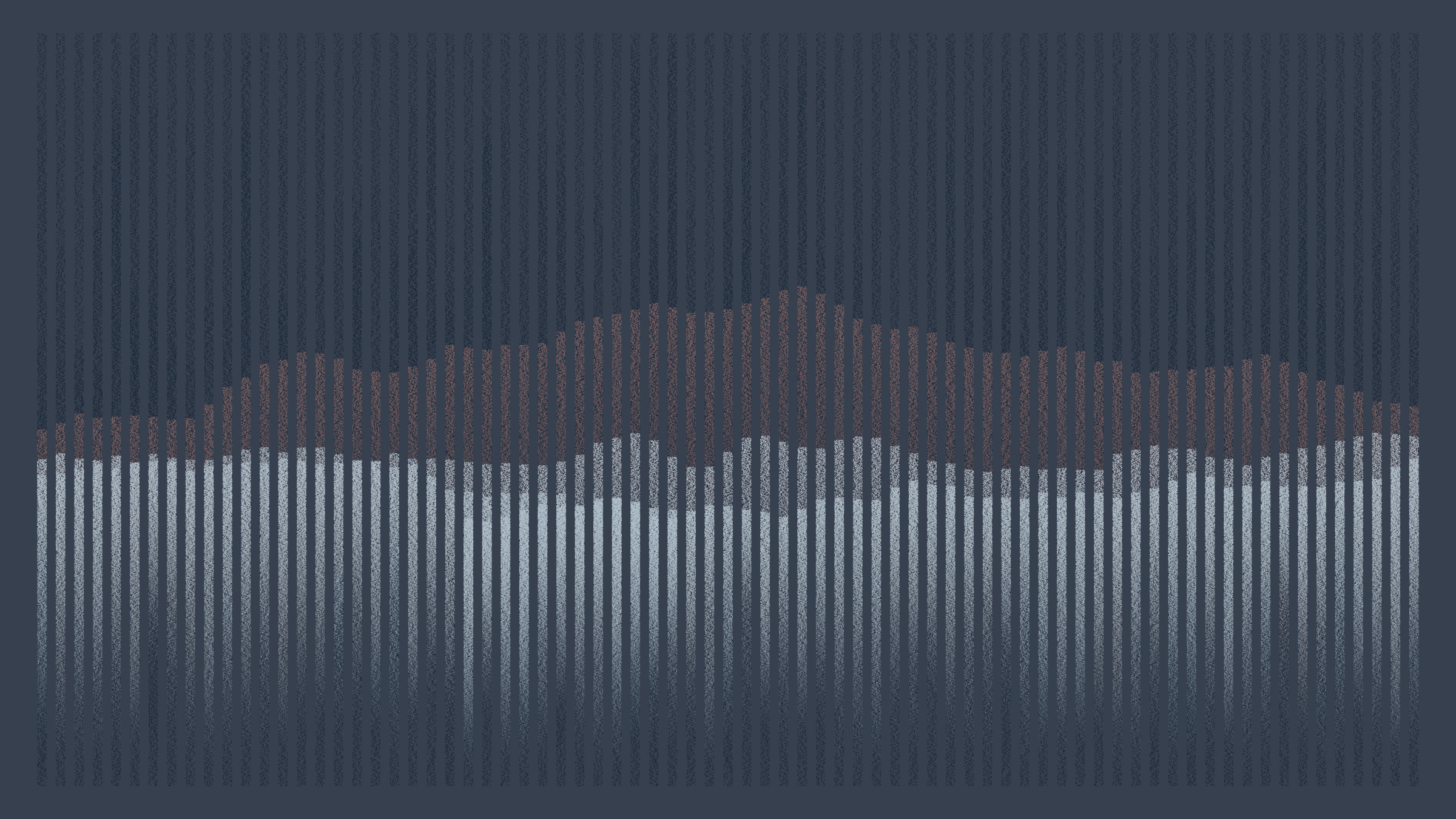 The Pointila algorithm first divides the canvas into columns. It then traverses the canvas dropping dots along those columns. From just a handful of layers, landscapes emerge. They take on a variety of forms: from rolling plains and steep canyons to jagged peaks and dreamy moors. Some are sharp and tense, others hazy and ethereal. They are coloured with handpicked palettes and animated with bold glitches – a nod to the shared optics of Pointillism and pixels.