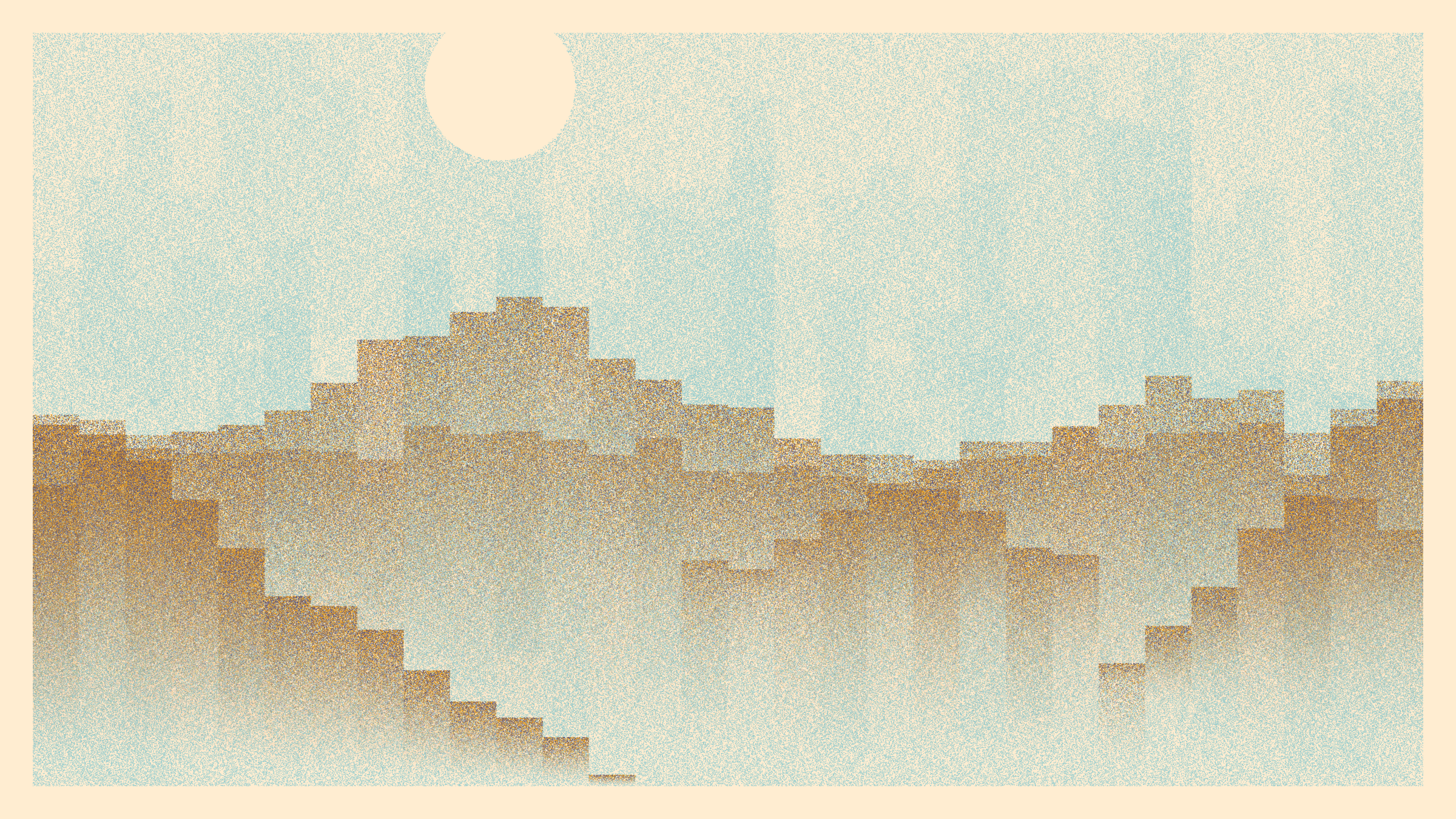 The Pointila algorithm first divides the canvas into columns. It then traverses the canvas dropping dots along those columns. From just a handful of layers, landscapes emerge. They take on a variety of forms: from rolling plains and steep canyons to jagged peaks and dreamy moors. Some are sharp and tense, others hazy and ethereal. They are coloured with handpicked palettes and animated with bold glitches – a nod to the shared optics of Pointillism and pixels.