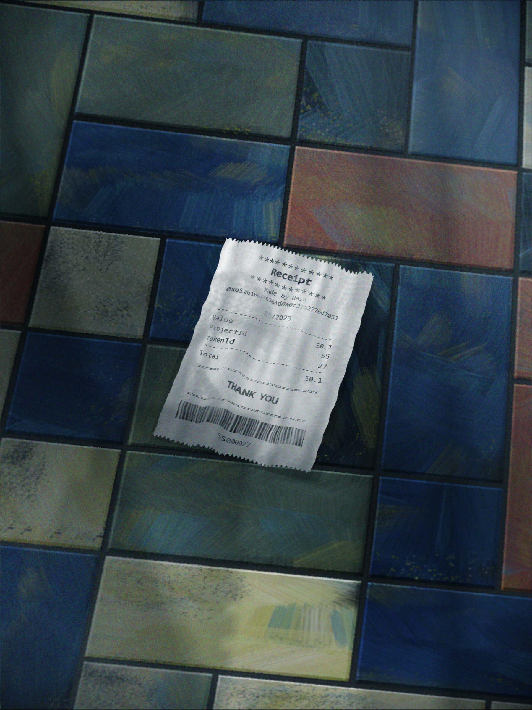 "Public Art" is a generative art piece with a concept of exploring new histories in art. As demonstrated in [0xhaiku's previous work, "Receipt,"](https://slbls.art/receipt) the transaction information engraved on receipts suggests that new art finds value in the record of transactions, connecting you to the art. In this work, a color palette inspired by Vermeer, Hokusai and others is used to generate tiles with a generative oil painting-like touch. This symbolizes history, expressing the hope that new art will truly become "public" through the changes and transitions of history.