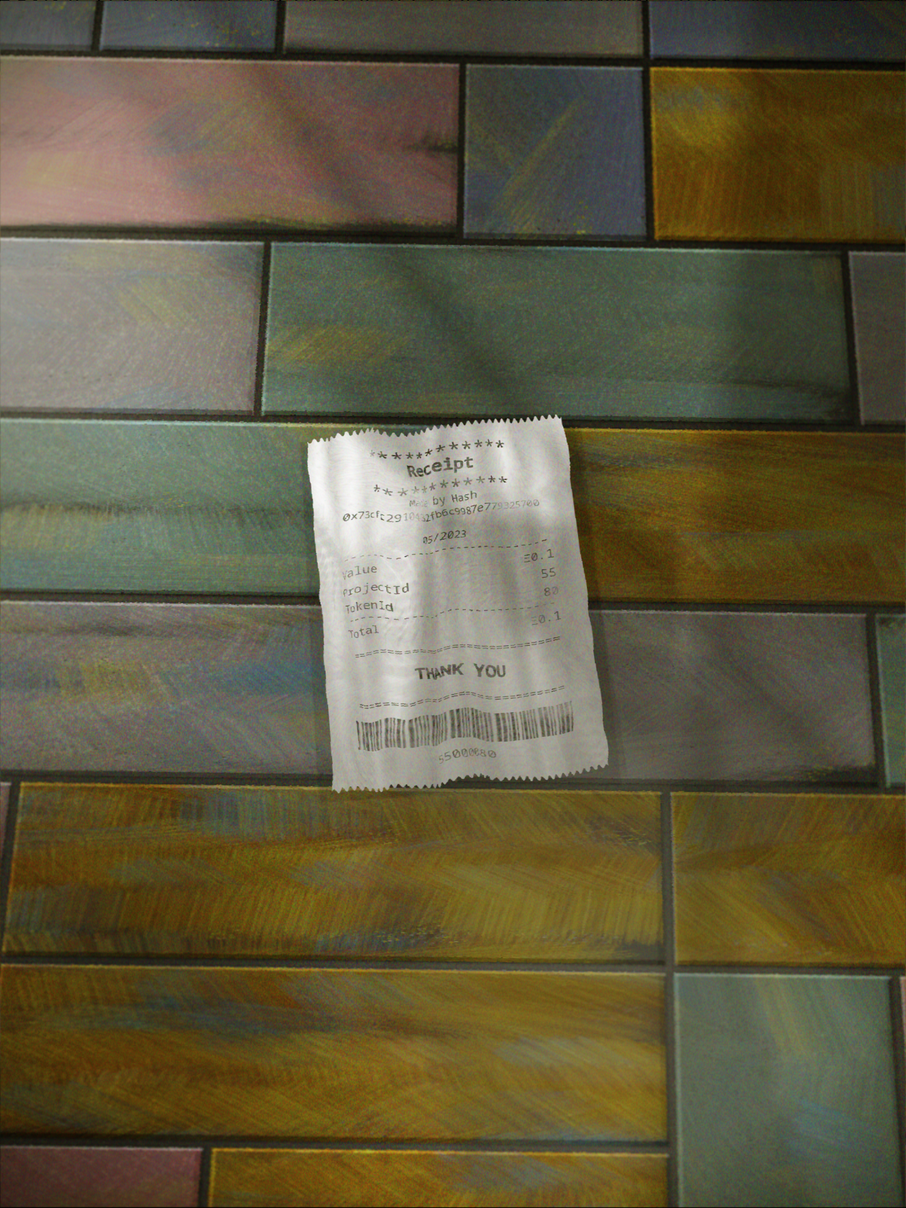 The receipt includes information on the Seed generated by ArtBlocksEngine at the time of the transaction, as well as token-specific elements. At the BrightMoment event in Japan, physical receipts with similar information printed on them will be distributed. 0xhaiku values the idea that everyone can participate in new art without relying on authority and has chosen the motif of everyday street receipts.