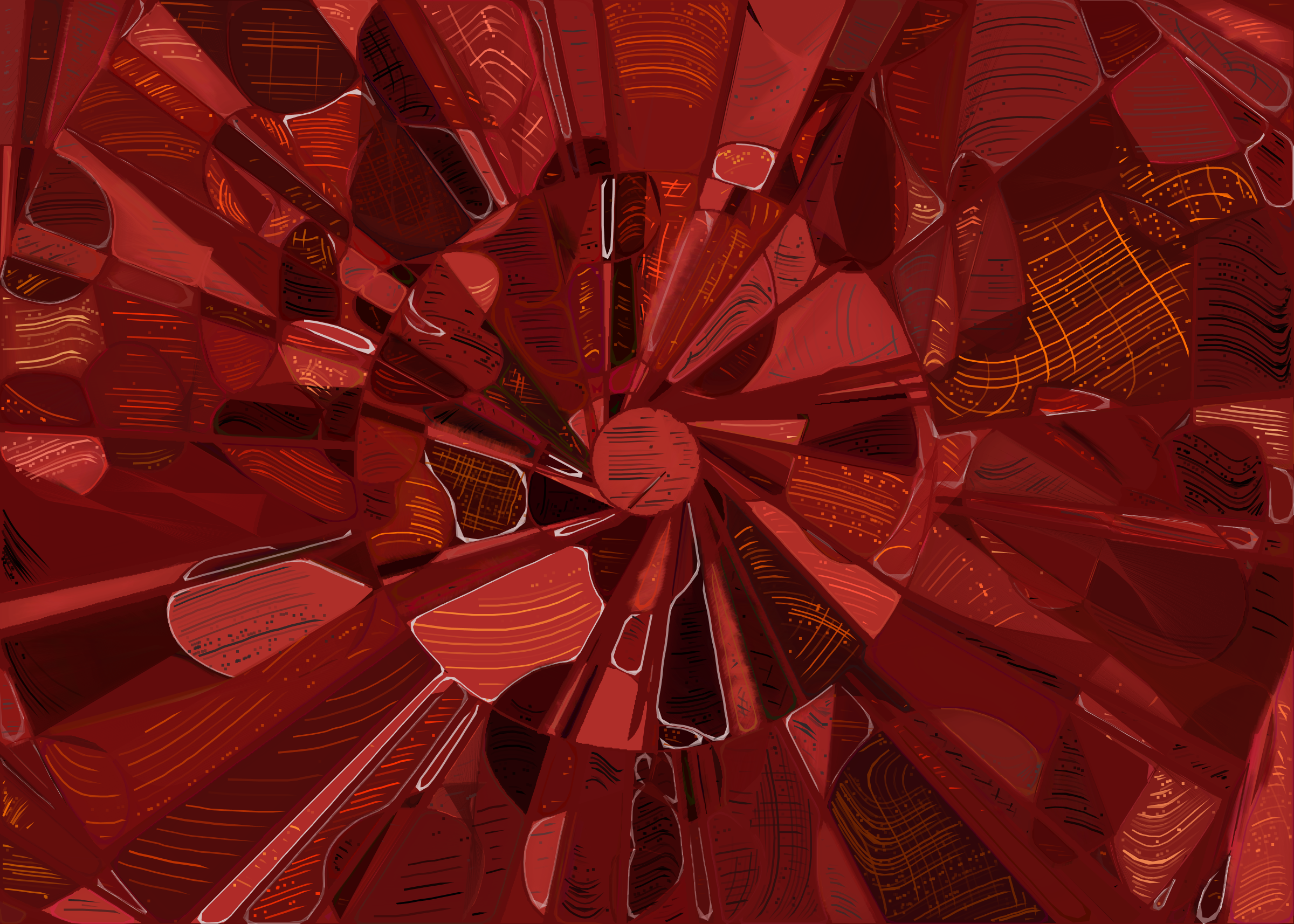 The rendering of **Running Moon** is inspired by stained glass and watercolor. It captures the sharpness of the glass and the softness of light using abstract forms. As organic shapes gradually expand to fill the space, brush-pen-like stripes solder these pieces together to form intricate compositions.
