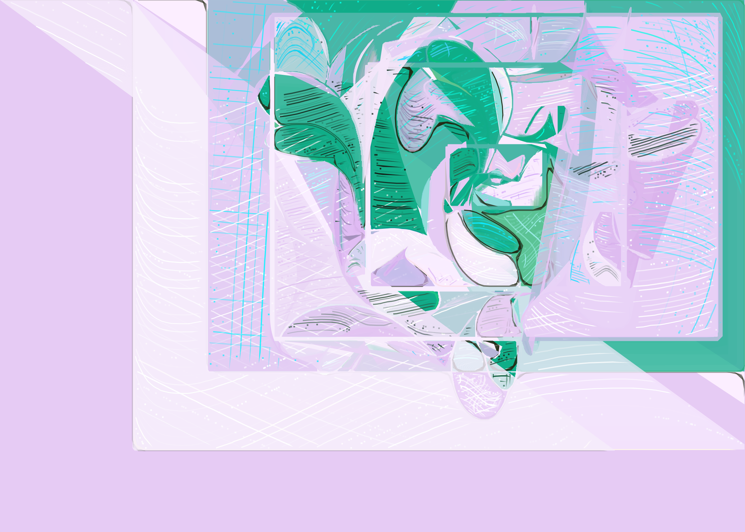 The rendering of **Running Moon** is inspired by stained glass and watercolor. It captures the sharpness of the glass and the softness of light using abstract forms. As organic shapes gradually expand to fill the space, brush-pen-like stripes solder these pieces together to form intricate compositions.