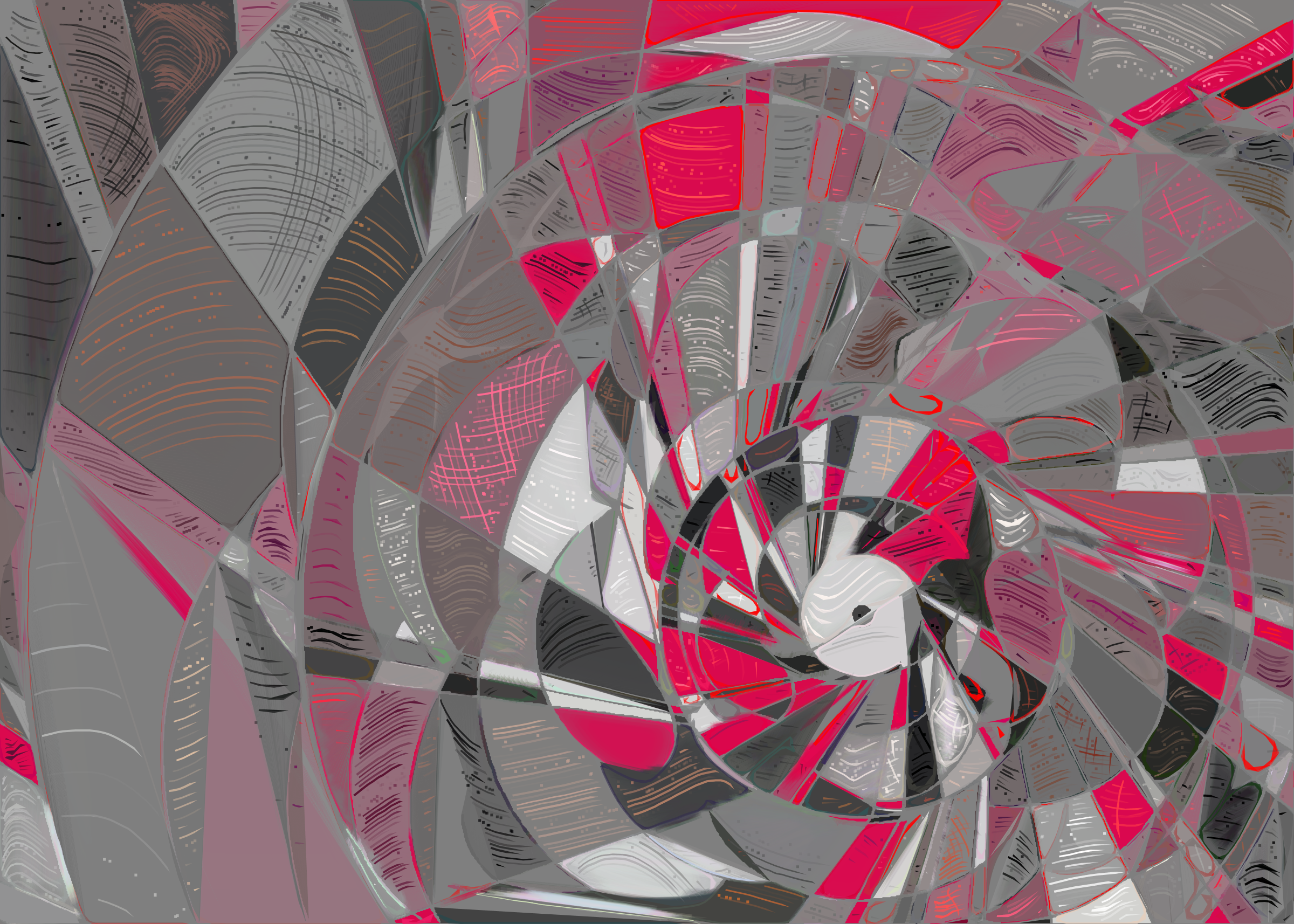 The rendering of **Running Moon** is inspired by stained glass and watercolor. It captures the sharpness of the glass and the softness of light using abstract forms. As organic shapes gradually expand to fill the space, brush-pen-like stripes solder these pieces together to form intricate compositions.